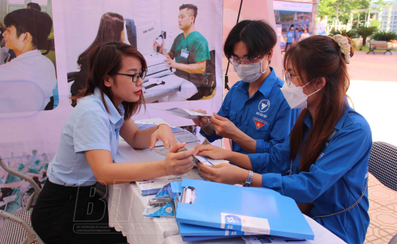 Các đơn vị tuyển dụng trực tiếp tư vấn, giới thiệu việc làm với sinh viên.
