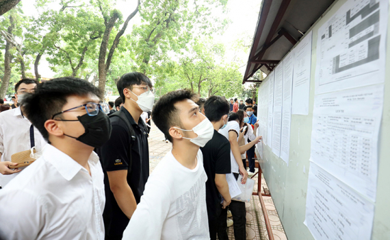 Thí sinh xem số báo danh tại điểm thi Trường THPT Phan Đình Phùng, Hà Nội.