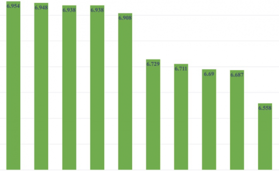 Sau Vĩnh Phúc là Nam Định với điểm trung bình 6,948, Ninh Bình là 6,938...