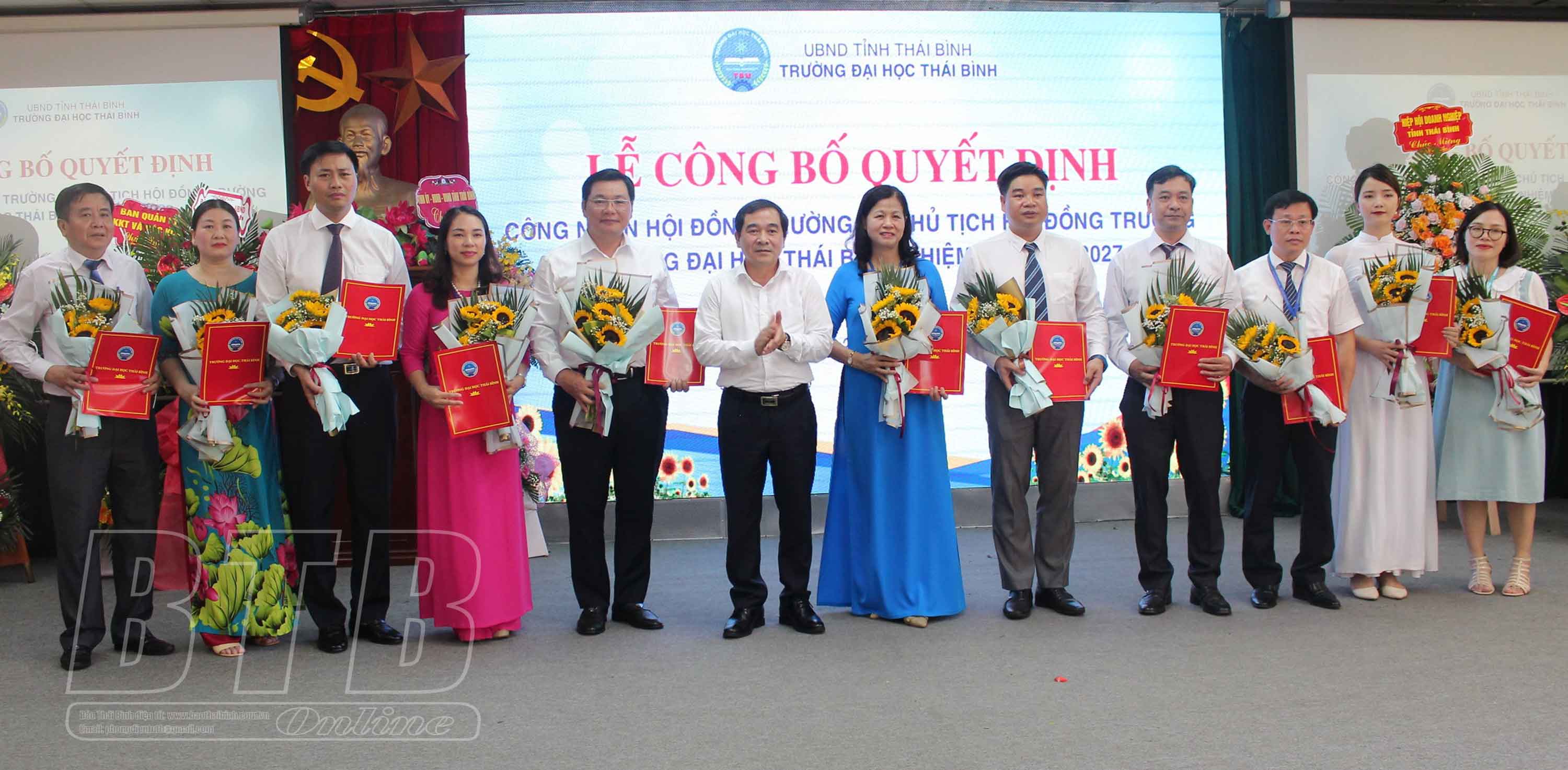 Tại buổi lễ, đồng chí Nguyễn Tiến Thành, Phó Bí thư thường trực Tỉnh ủy, Chủ tịch HĐND tỉnh đã trao quyết định công nhận Hội đồng trường và Chủ tịch Hội đồng trường Đại học Thái Bình, nhiệm kỳ 2022 – 2027. Theo quyết định, công nhận Chủ tịch Hội đồng trường Đại học Thái Bình, nhiệm kỳ 2022 – 2027 đối với bà Nguyễn Thị Kim Lý, Bí thư Đảng ủy Trường Đại học Thái Bình.