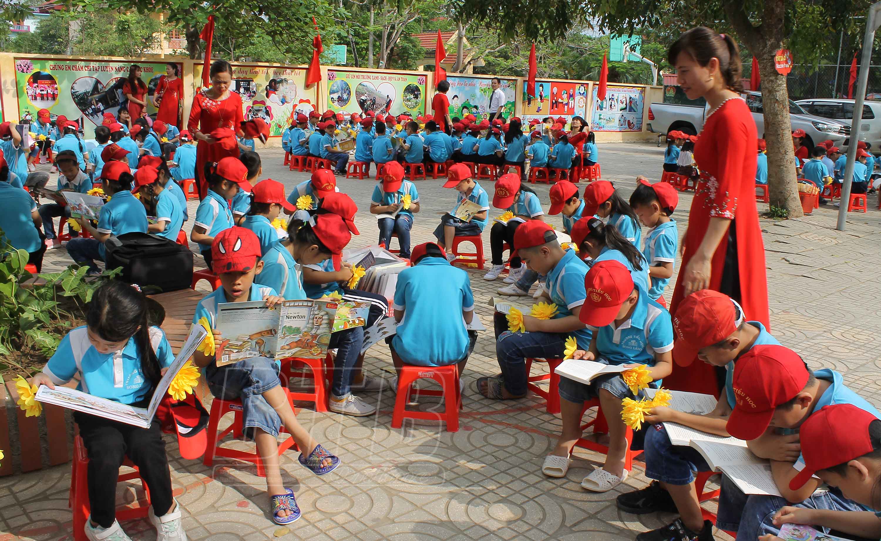 Hoạt động ngoại khóa đọc sách tại sân trường của Trường Tiểu học Song Lãng.