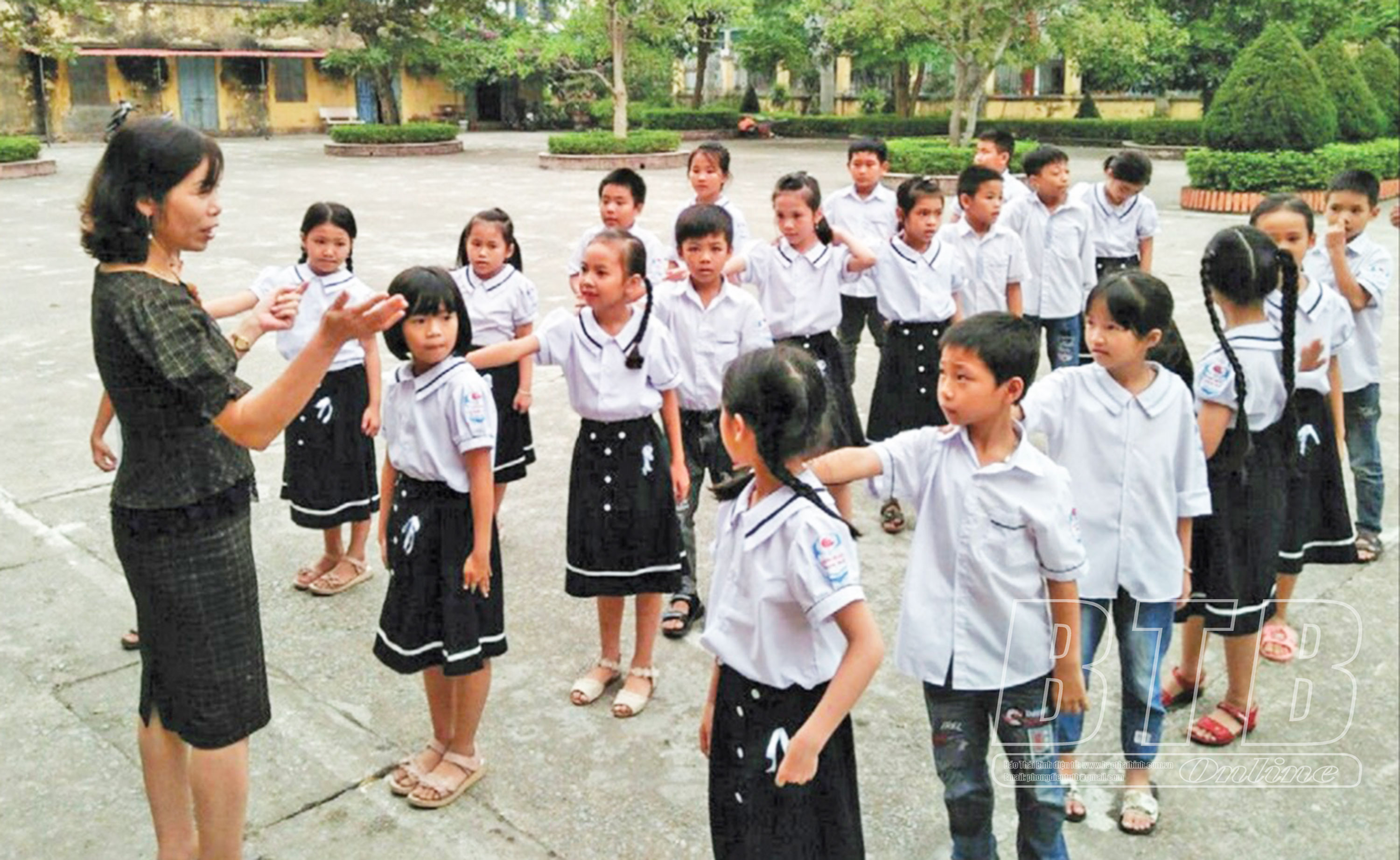 Cô và trò Trường Tiểu học Nam Hà (Tiền Hải).