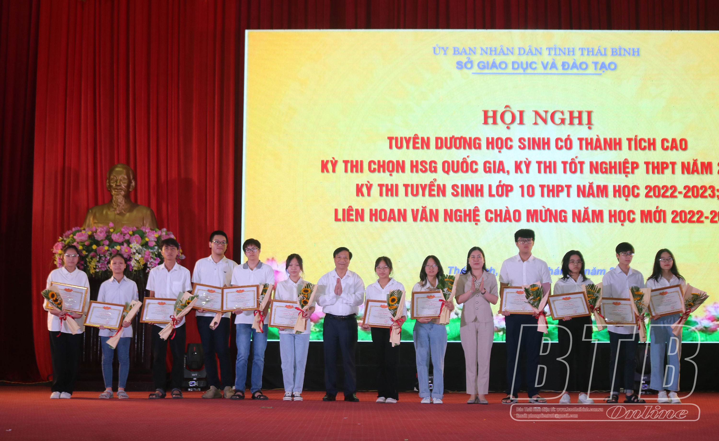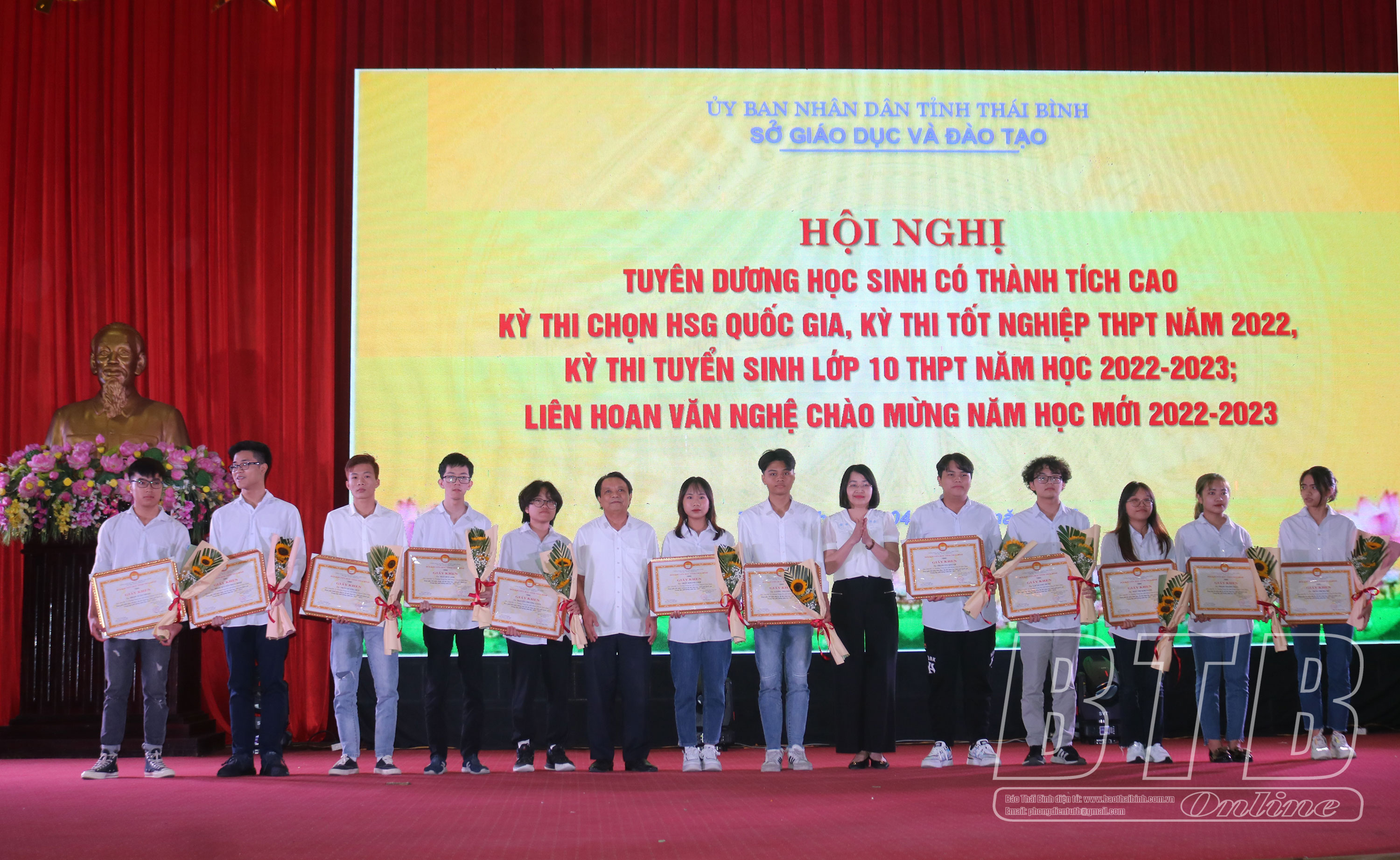 Tại buổi lễ, 42 học sinh có thành tích xuất sắc trong các kỳ thi năm 2022 vinh dự được nhận giấy khen của Giám đốc Sở Giáo dục và Đào tạo và quà của Hội Khuyến học tỉnh.