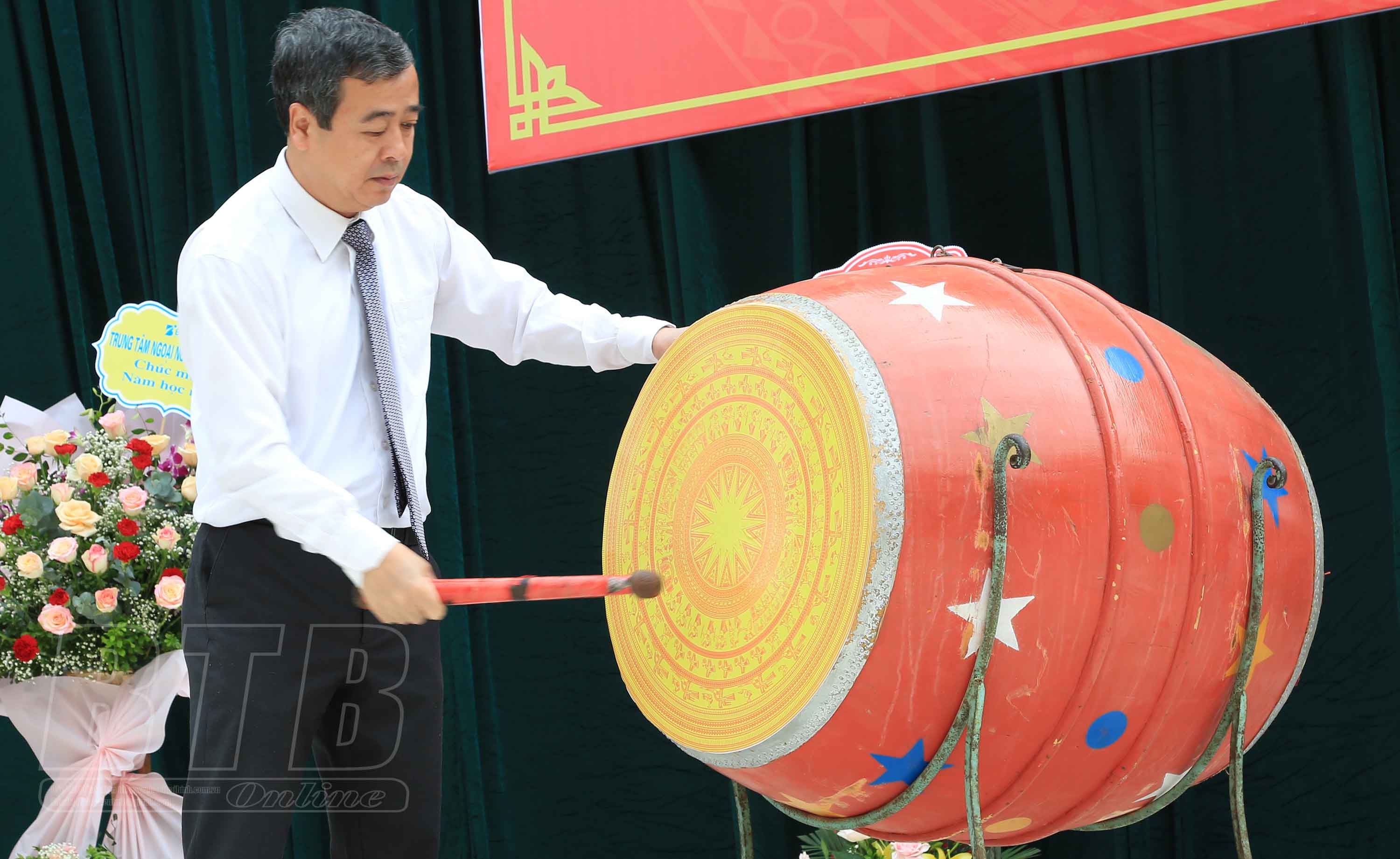 Đồng chí Ngô Đông Hải, Ủy viên Ban Chấp hành Trung ương Đảng đánh trống khai giảng năm học mới 2022 - 2023.