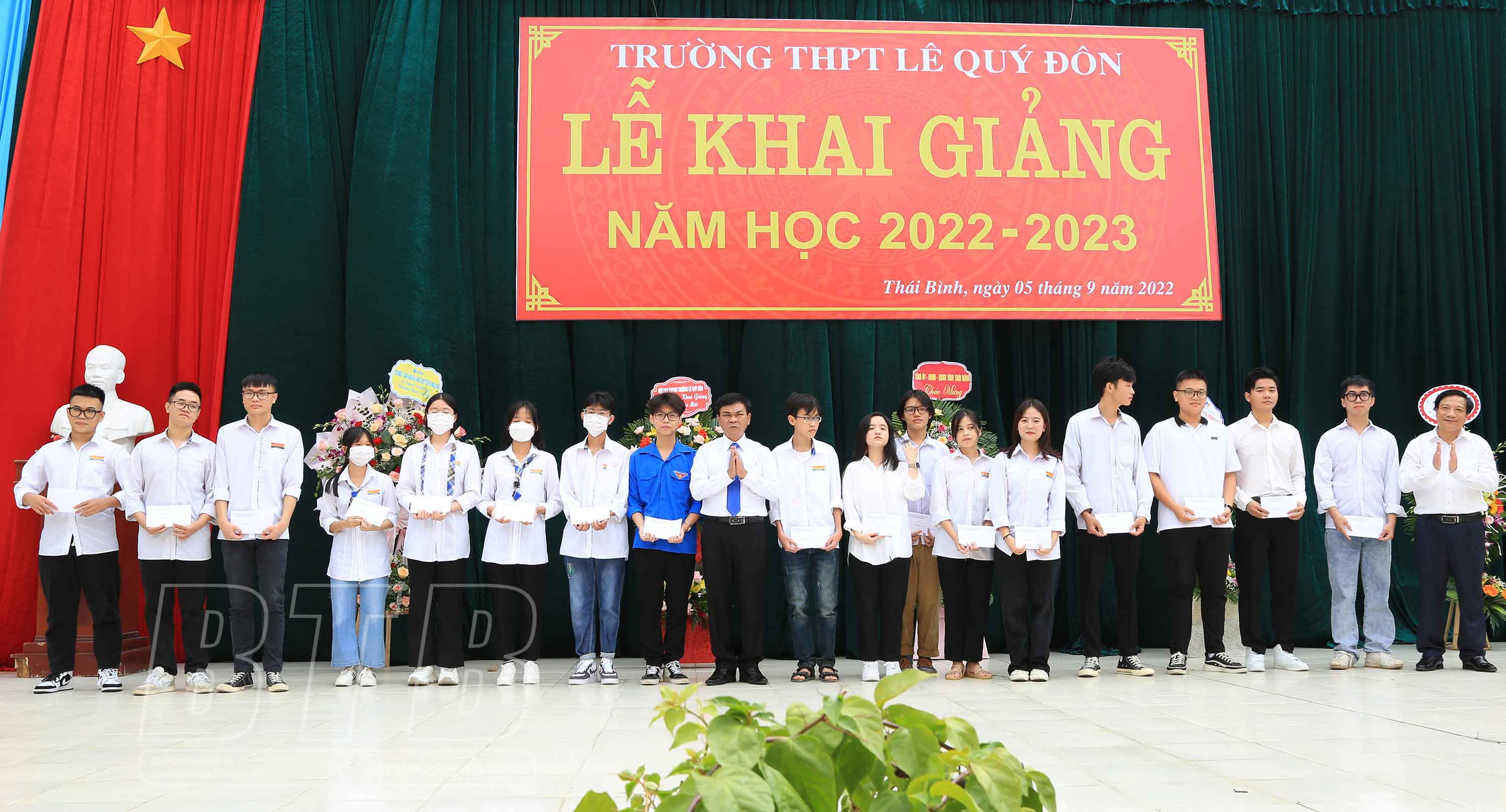 Thay mặt Tỉnh ủy, HĐND, UBND tỉnh, đồng chí Ngô Đông Hải, Ủy viên Ban Chấp hành Trung ương Đảng, Bí thư Tỉnh ủy đã tặng hoa chúc mừng thầy và trò nhà trường nhân dịp khai giảng, tặng quà cho 10 em học sinh có hoàn cảnh khó khăn, mỗi suất trị giá 1 triệu đồng và đánh trống khai giảng năm học mới 2022 - 2023.
