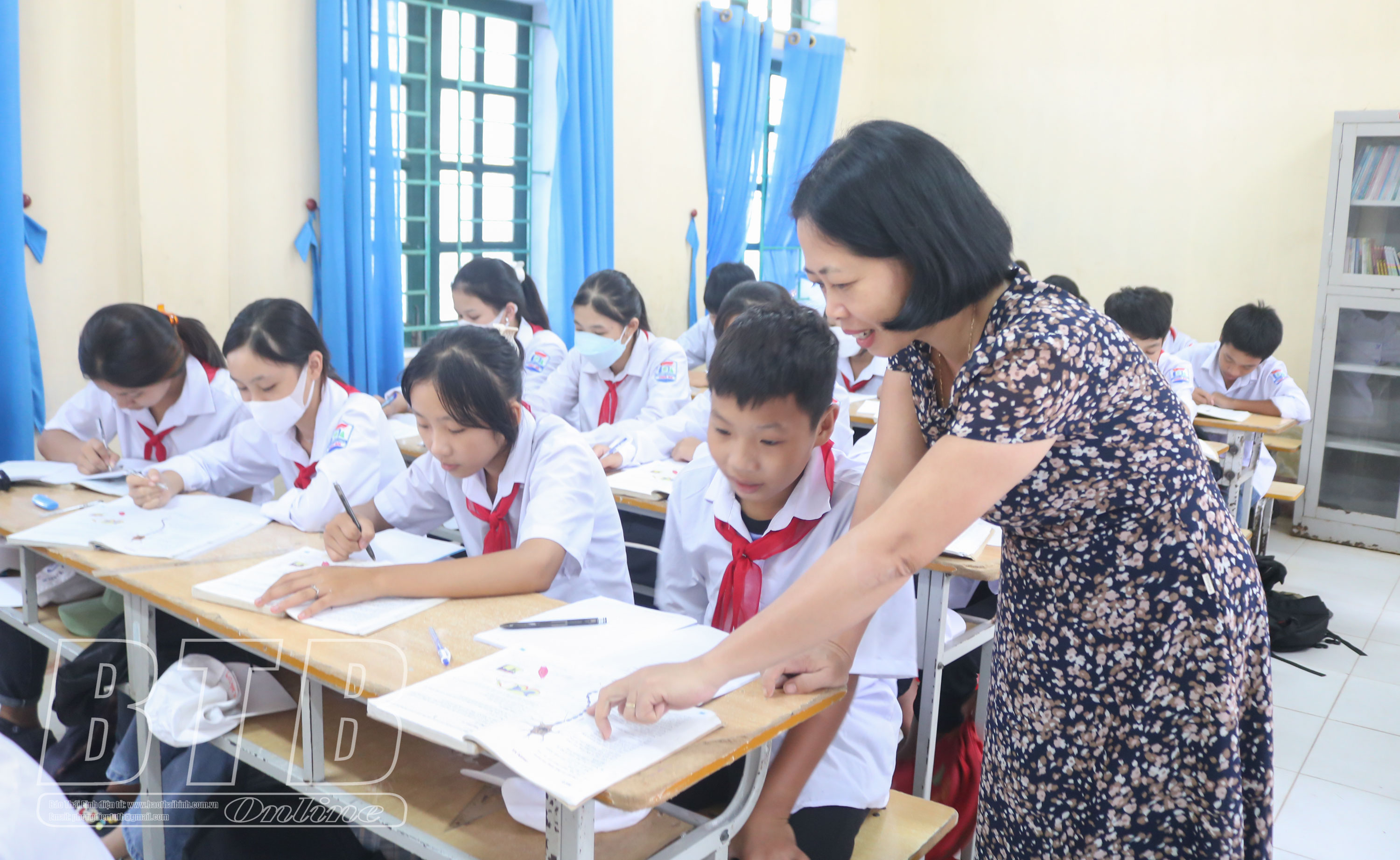 Tiết học của cô và trò Trường Tiểu học và THCS Thụy An (xã An Tân, huyện Thái Thụy).
