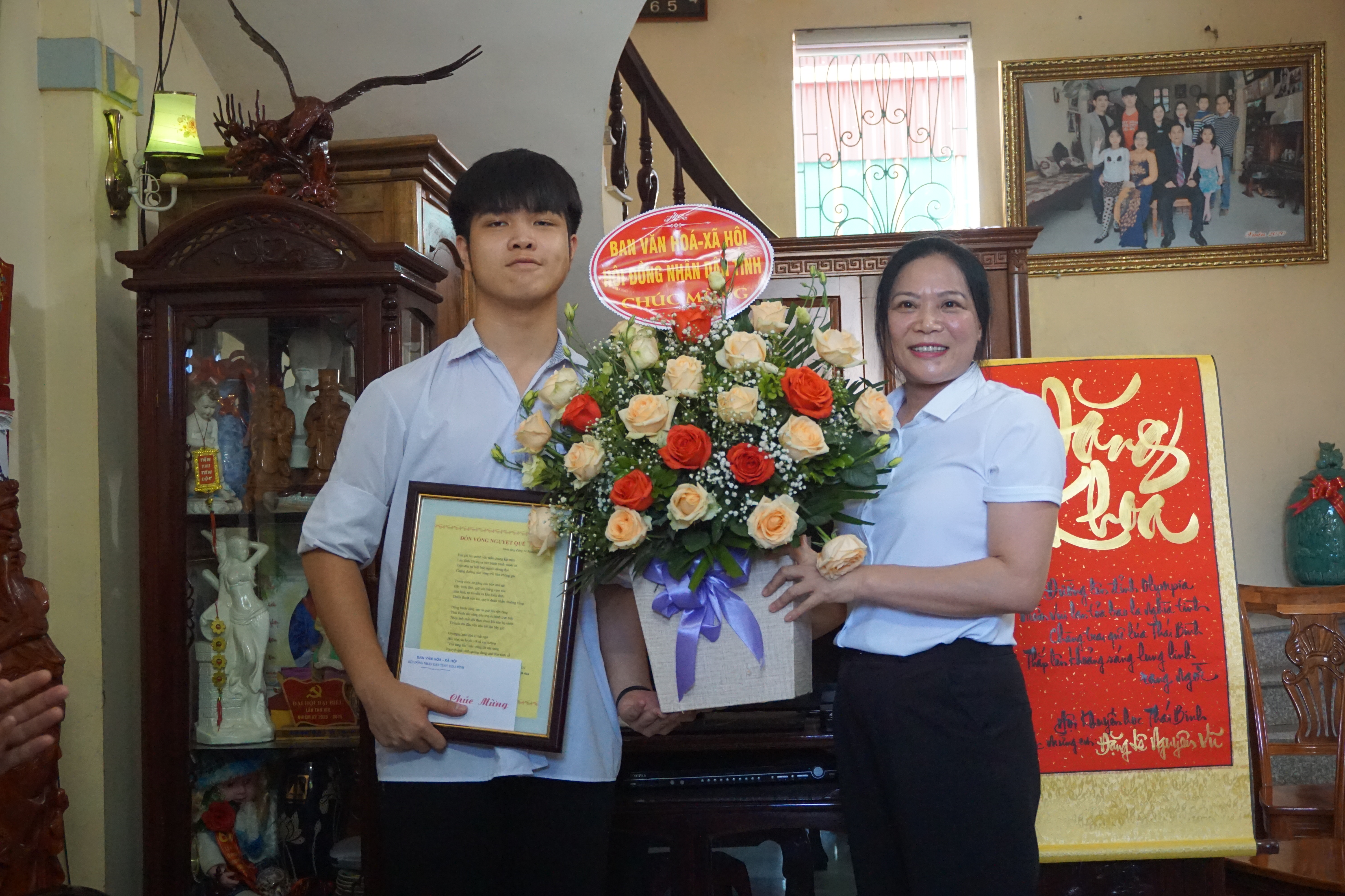Lãnh đạo Ban Văn hoá - Xã hội chúc mừng em Đặng Lê Nguyên Vũ.