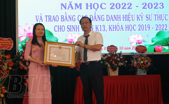 Nhân dịp này, lãnh đạo Trường Cao đẳng Nghề Thái Bình đã trao thưởng cho học sinh, sinh viên có thành tích xuất sắc trong năm học, khóa học; trao bằng tốt nghiệp hệ cao đẳng, danh hiệu kỹ sư thực hành cho sinh viên khóa XIII.