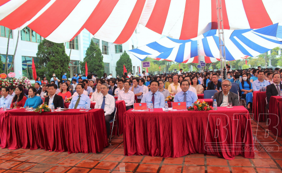 Đồng chí Nguyễn Tiến Thành, Phó Bí thư thường trực Tỉnh ủy, Chủ tịch HĐND tỉnh và các đại biểu dự lễ khai giảng.