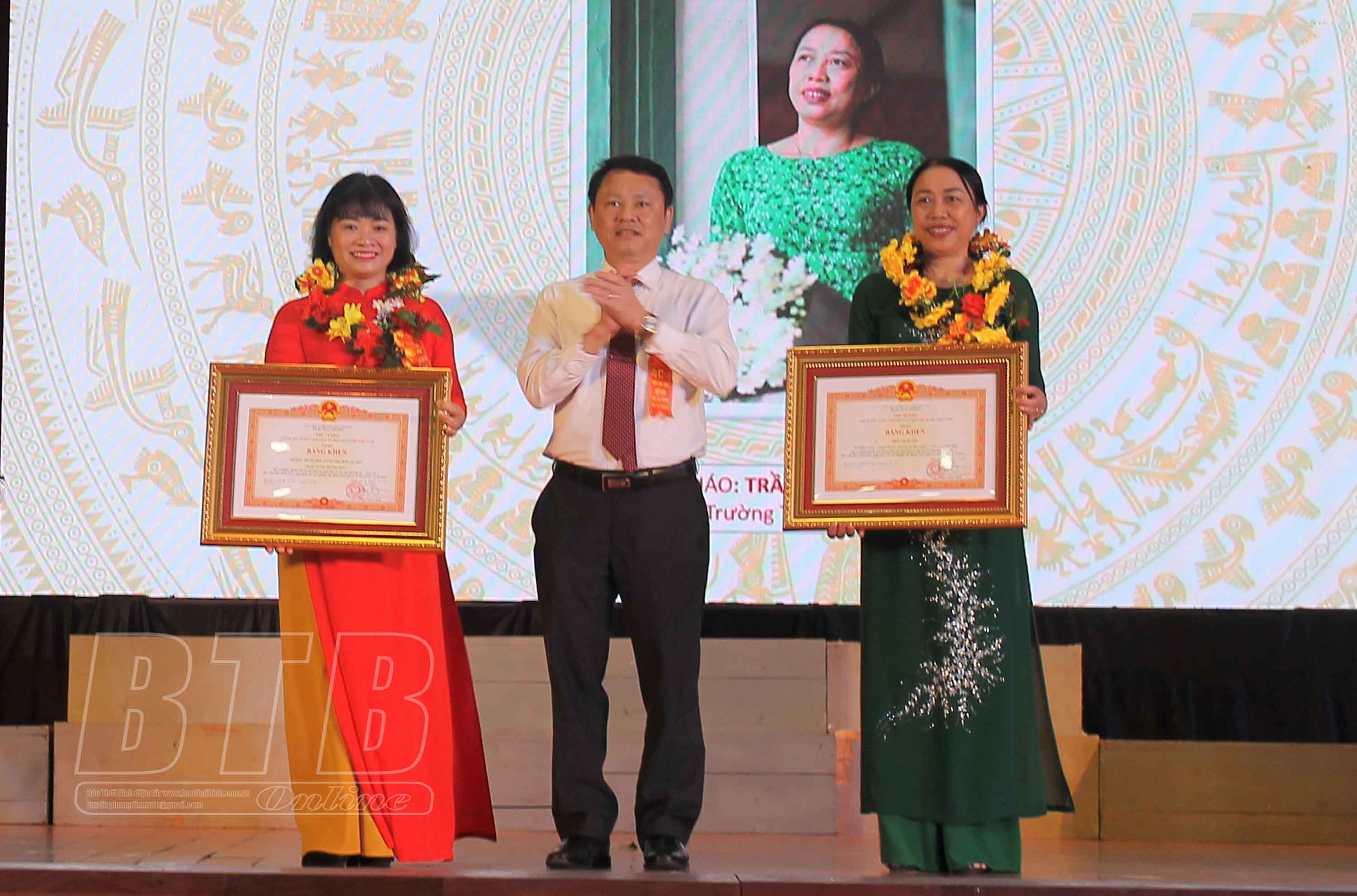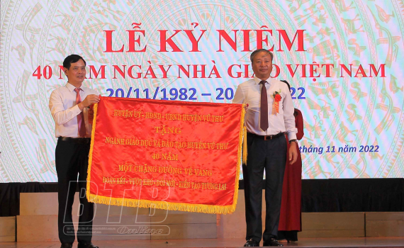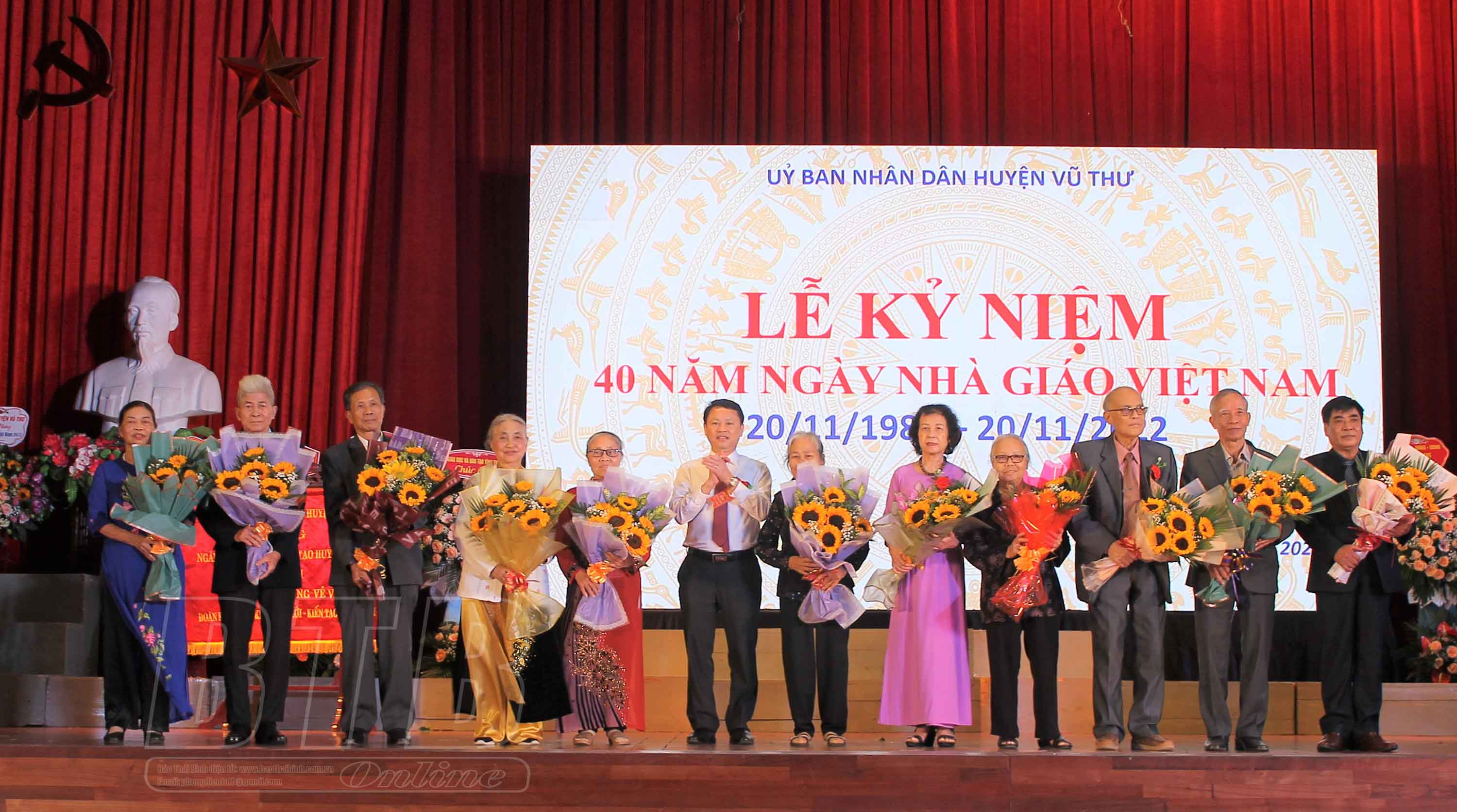 Nhân dịp này, lãnh đạo Huyện ủy Vũ Thư trao tặng bức trướng của Huyện ủy, HĐND, UBND huyện mang dòng chữ “Đoàn kết - vượt khó - đổi mới - kiến tạo tương lai” cho ngành giáo dục và đào tạo huyện. Các đồng chí lãnh đạo Sở Giáo dục và Đào tạo, Huyện ủy, UBND huyện tặng hoa bày tỏ lòng tri ân tới đại diện các nhà giáo lão thành và trao bằng khen, cờ thi đua của Thủ tướng Chính phủ, Bộ Giáo dục và Đào tạo, UBND tỉnh cho 42 tập thể, cá nhân có thành tích xuất sắc trong các phong trào thi đua ngành giáo dục huyện.