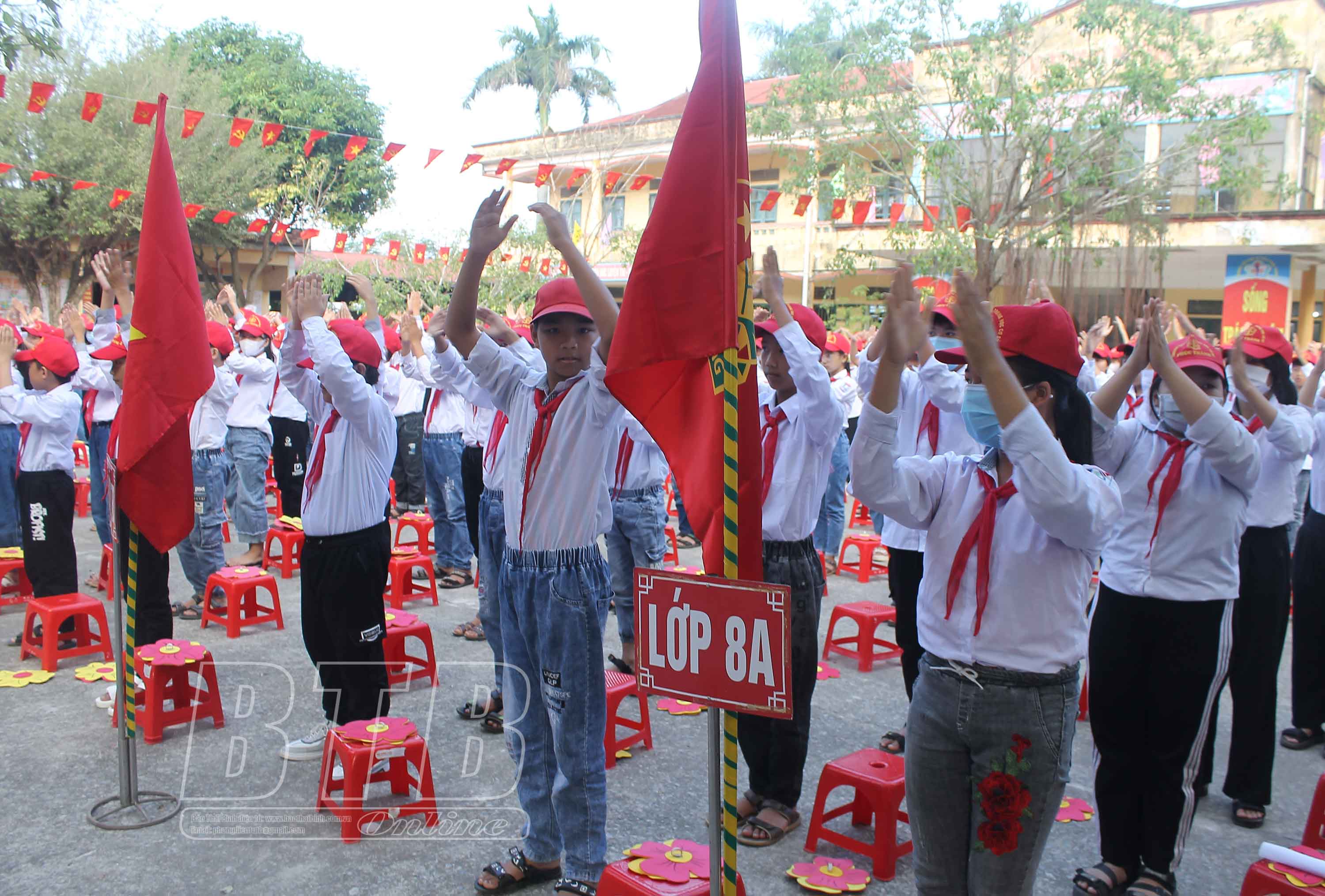 Học sinh Trường Tiểu học và THCS Phúc Thành dự lễ kỷ niệm.