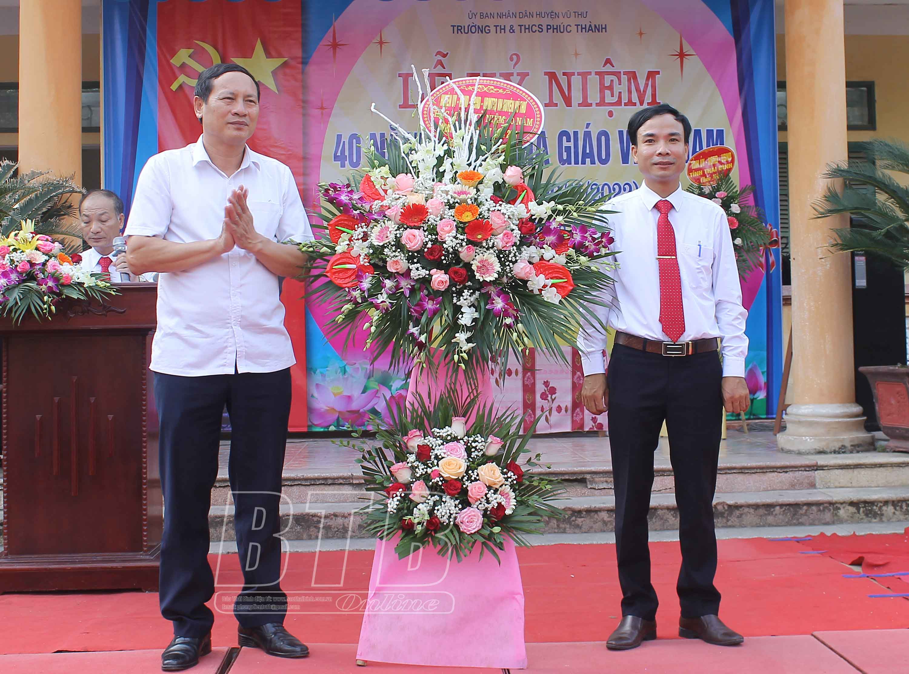 Lãnh đạo Huyện ủy Vũ Thư tặng hoa, chúc mừng Trường Tiểu học và THCS Phúc Thành.