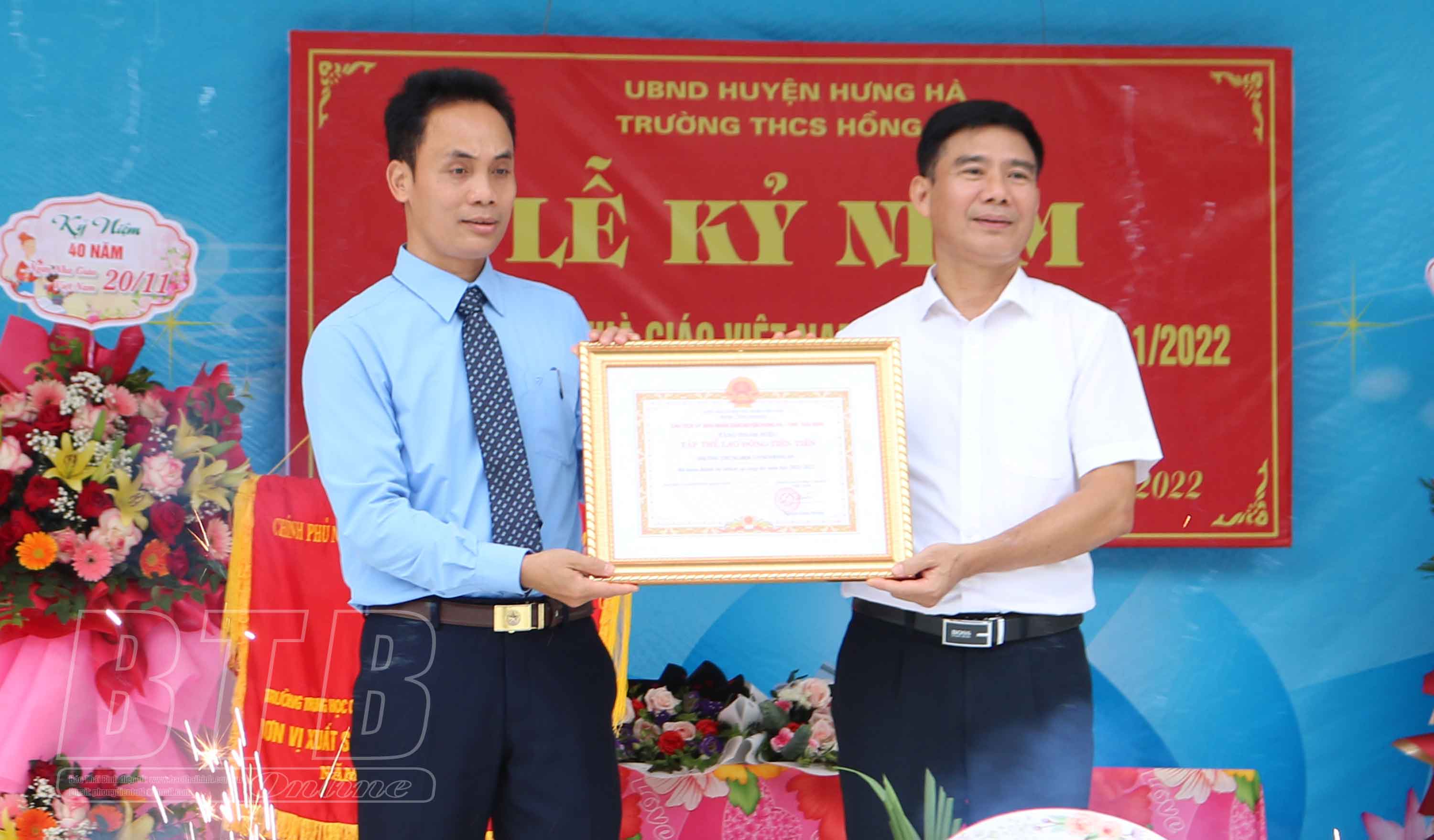 Lãnh đạo huyện Hưng Hà tặng danh hiệu tập thể lao động tiên tiến cho Trường THCS Hồng An.