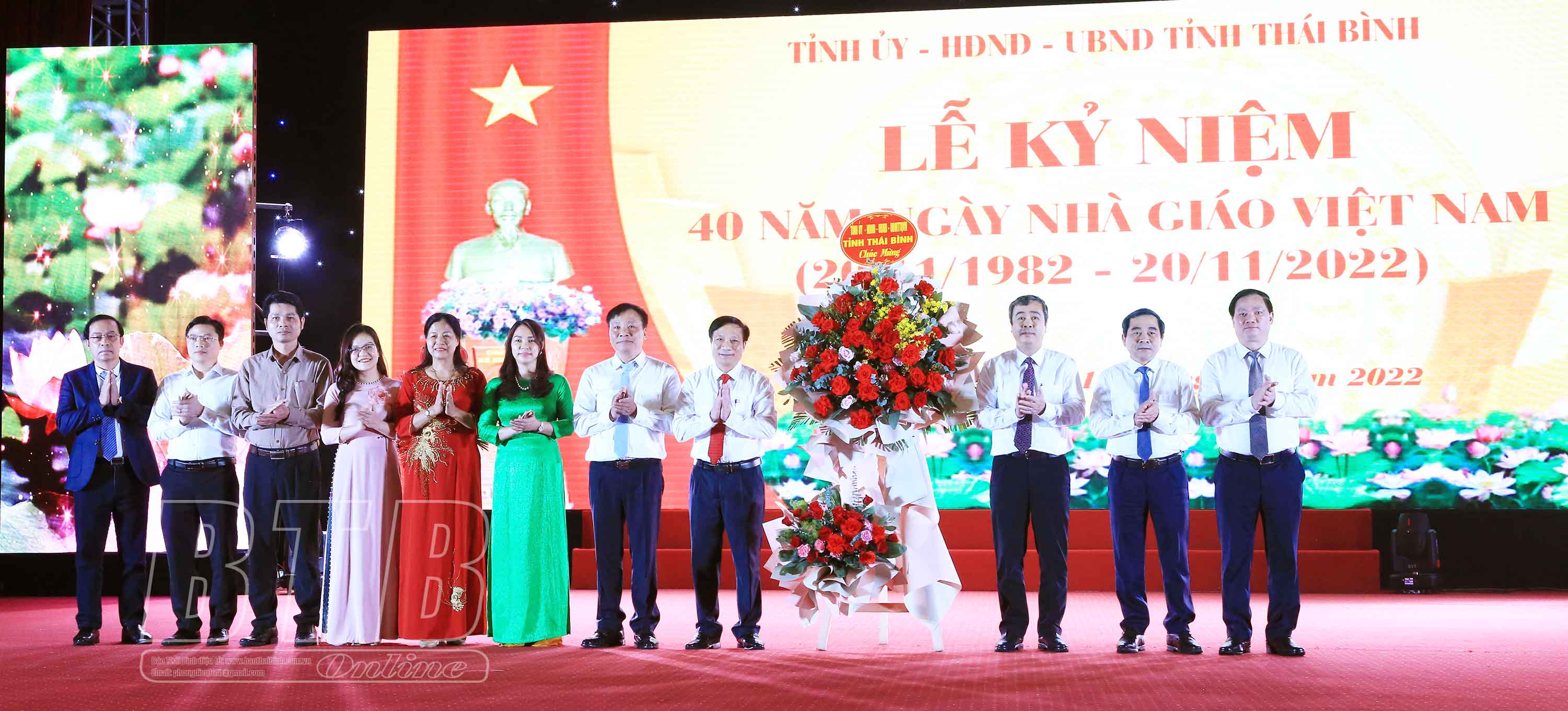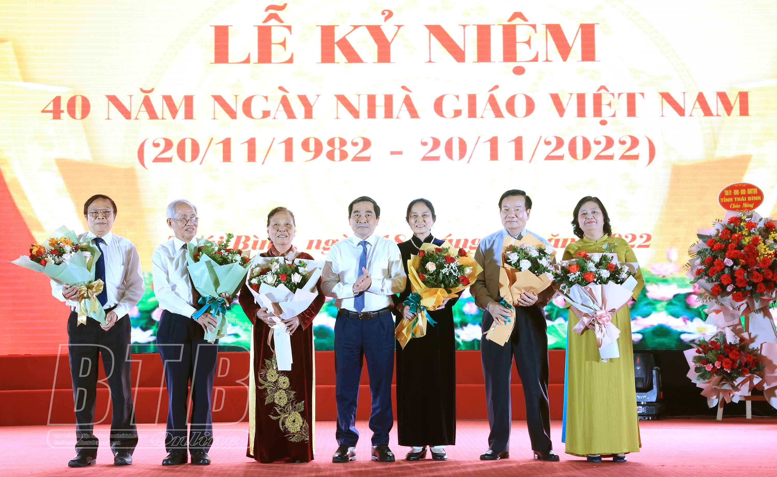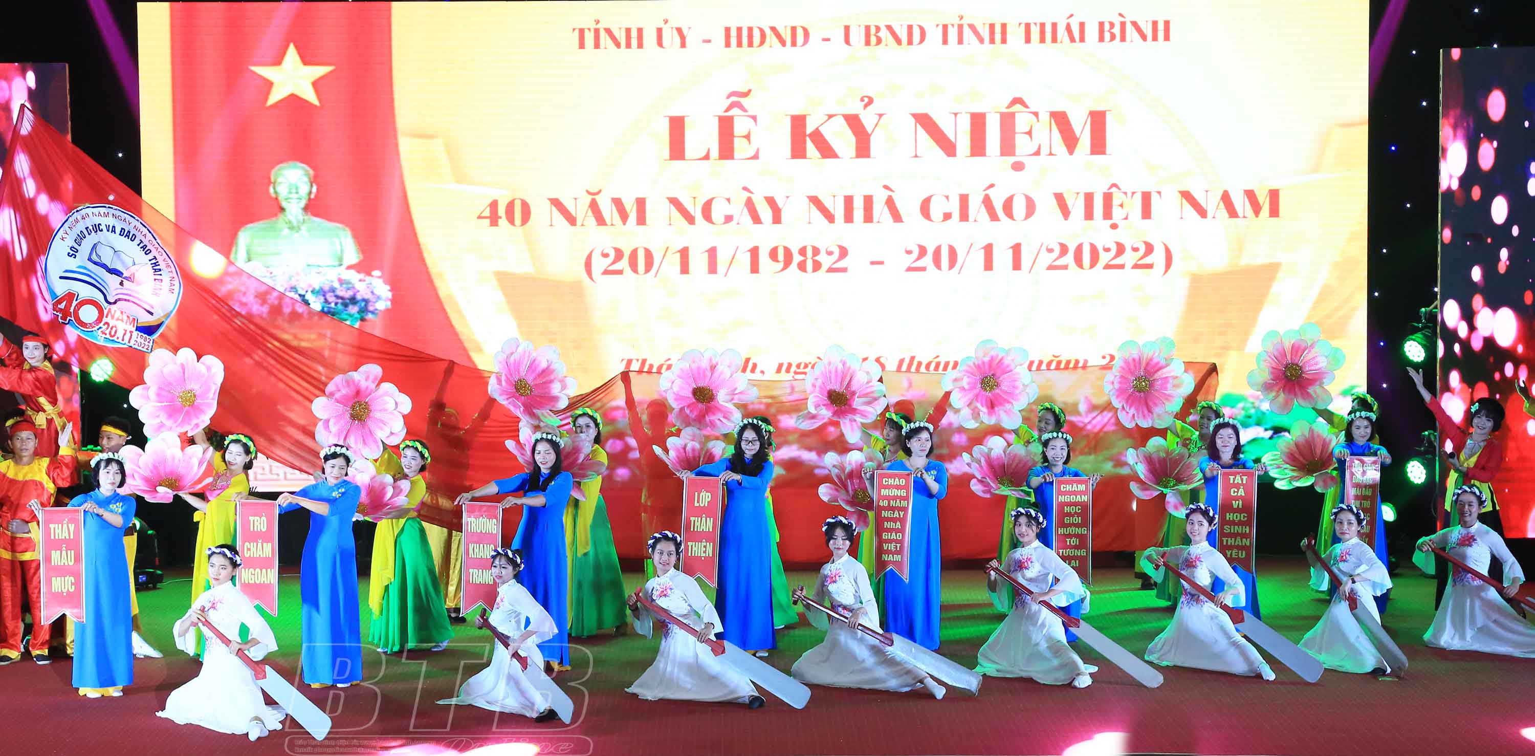 Diễn văn kỷ niệm 40 năm ngày Nhà giáo Việt Nam do lãnh đạo Sở Giáo dục và Đào tạo trình bày tại lễ kỷ niệm nhấn mạnh: Trong suốt quá trình lịch sử, ngành giáo dục Thái Bình đã nuôi dưỡng biết bao thế hệ giáo viên nhiệt huyết, luôn hết lòng vì sự nghiệp “trồng người”. Ý thức được sứ mệnh cao cả của nghề giáo, những người đang công tác trong ngành giáo dục luôn phấn đấu, nỗ lực để đưa ngành giáo dục tỉnh nhà ngày càng phát triển. Trải qua những năm tháng lịch sử, trong cả thời chiến và thời bình, đến nay, ngành giáo dục Thái Bình đã đạt được nhiều kết quả đáng ghi nhận. Suốt những năm tháng chiến tranh, rất nhiều thầy cô giáo xếp bút nghiên lên đường chiến đấu; 200 nhà giáo đã mãi mãi nằm lại chiến trường. Hòa bình lập lại, ngành giáo dục phát triển mạnh mẽ. Toàn tỉnh hiện có 742 cơ sở giáo dục mầm non, giáo dục phổ thông, giáo dục thường xuyên với gần 25.000 cán bộ quản lý, giáo viên, nhân viên, trong đó có 84,7% đạt chuẩn; 685/742 cơ sở giáo dục đạt chuẩn quốc gia. Kỳ thi tốt nghiệp THPT năm 2022, Thái Bình là 1 trong 10 tỉnh có điểm trung bình các môn thi cao nhất cả nước và có số điểm 10 nhiều nhất. Tỉnh có học sinh giành ngôi quán quân cuộc thi Đường lên đỉnh Olympia năm thứ 22; 28 học sinh đạt giải quốc gia. Chất lượng đội ngũ giáo viên và cán bộ quản lý ngày càng được nâng lên và chuẩn hóa; có phẩm chất chính trị, đạo đức, lối sống tốt, có ý thức trách nhiệm, năng lực công tác và tận tụy với nghề, hoàn thành tốt chức trách, nhiệm vụ được giao, đáp ứng yêu cầu nhiệm vụ của ngành.