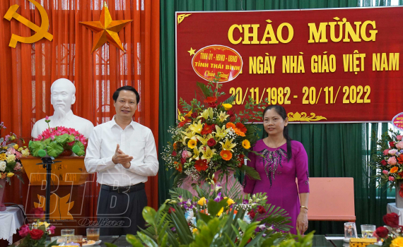 Sáng ngày 19/11, đồng chí Hoàng Thái Phúc, Ủy viên Ban Thường vụ, Trưởng ban Nội chính Tỉnh ủy đến thăm và chúc mừng Trường Mầm non Quỳnh Hoàng (Quỳnh Phụ) nhân kỷ niệm 40 năm ngày Nhà giáo Việt Nam (20/11/1982-20/11/2022).