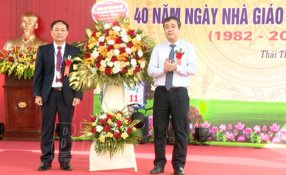 Nhân dịp kỷ niệm 60 năm thành lập Trường THPT Thái Ninh và 40 năm ngày Nhà giáo Việt Nam, đồng chí Bí thư Tỉnh uỷ đã tặng lẵng hoa và gửi lời chúc mừng tốt đẹp nhất đến các thầy giáo, cô giáo và các thế hệ học sinh của nhà trường.
