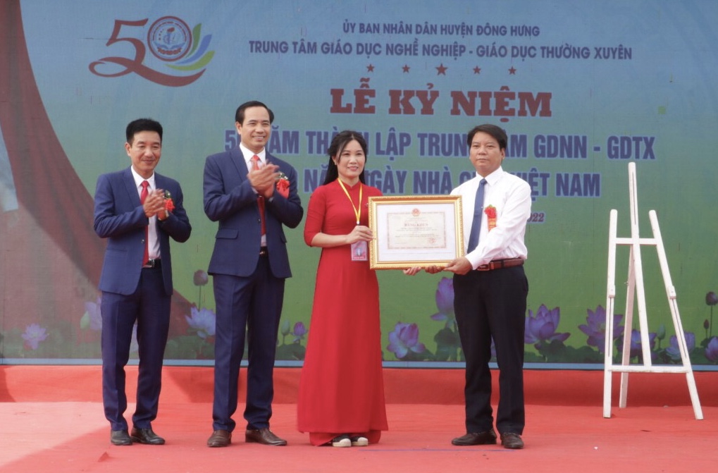 50 năm về trước, giữa lúc cuộc kháng chiến chống Mỹ đang diễn ra ác liệt, tháng 11/1972, Trường Bổ túc văn hóa cơ quan huyện Đông Hưng ra đời, nay là Trung tâm Giáo dục nghề nghiệp - Giáo dục thường xuyên huyện. Ngày đầu thành lập mới chỉ có 4 giáo viên với 1, 2 lớp dạy văn hóa, đến nay Trung tâm có 53 lớp với 1.230 học sinh. Nửa thế kỷ qua, lớp lớp cán bộ, giáo viên và học sinh Trung tâm luôn đoàn kết, nỗ lực vượt khó thi đua “Dạy tốt, học tốt”, gặt hái được những thành tích đáng tự hào. Trung tâm vinh dự được nhận Cờ thi đua của Chính phủ; 7 lần nhận cờ thi đua và bằng khen của UBND tỉnh; 5 lần nhận cờ thi đua và bằng khen của Bộ Giáo dục và Đào tạo. Đặc biệt năm 2020, Trung tâm được công nhận và suy tôn là đơn vị điển hình tiêu biểu 5 năm giai đoạn 2015 - 2020.