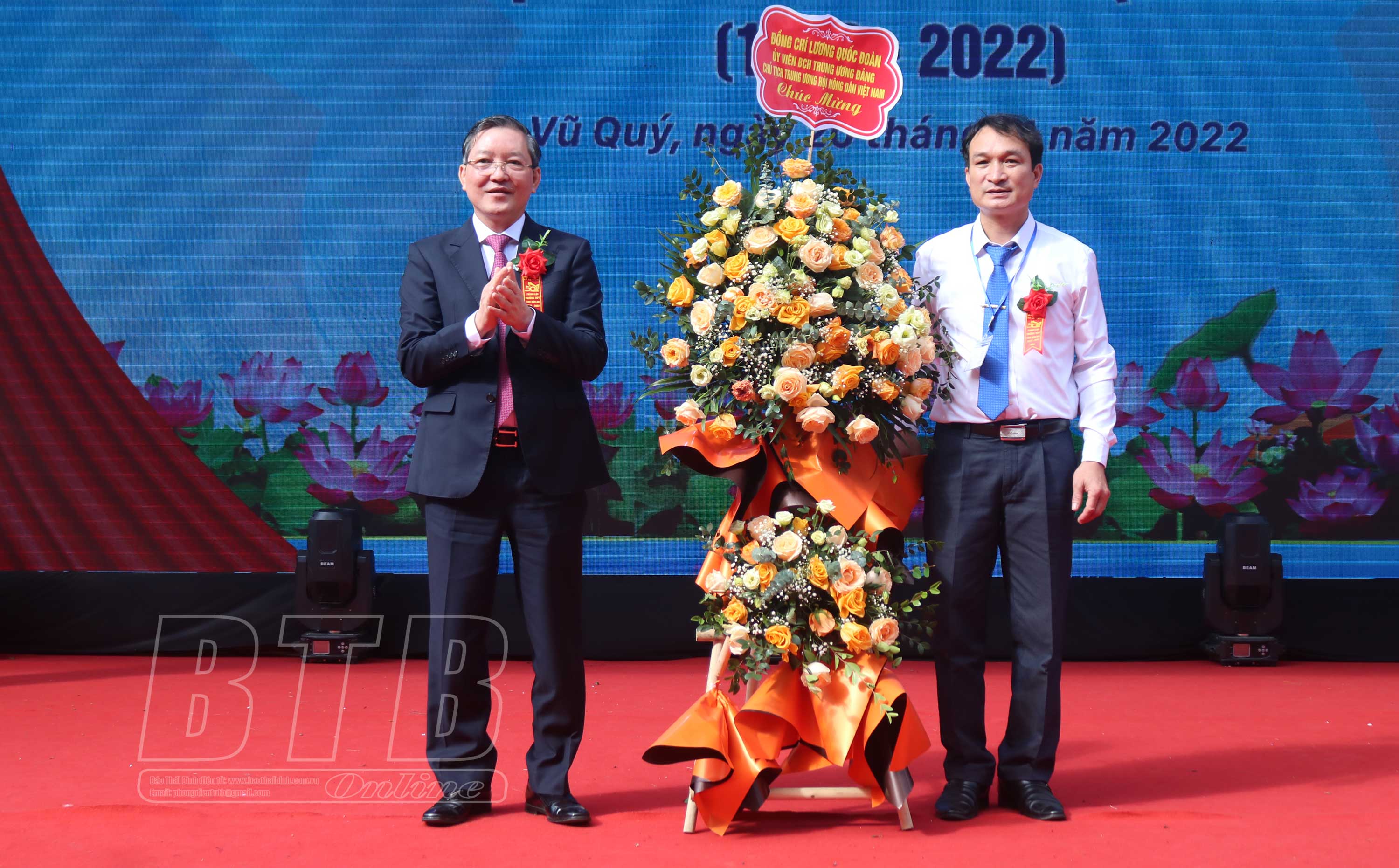 Đồng chí Lương Quốc Đoàn, Ủy viên Ban Chấp hành Trung ương Đảng, Chủ tịch Trung ương Hội Nông dân Việt Nam tặng hoa chúc mừng nhà trường.