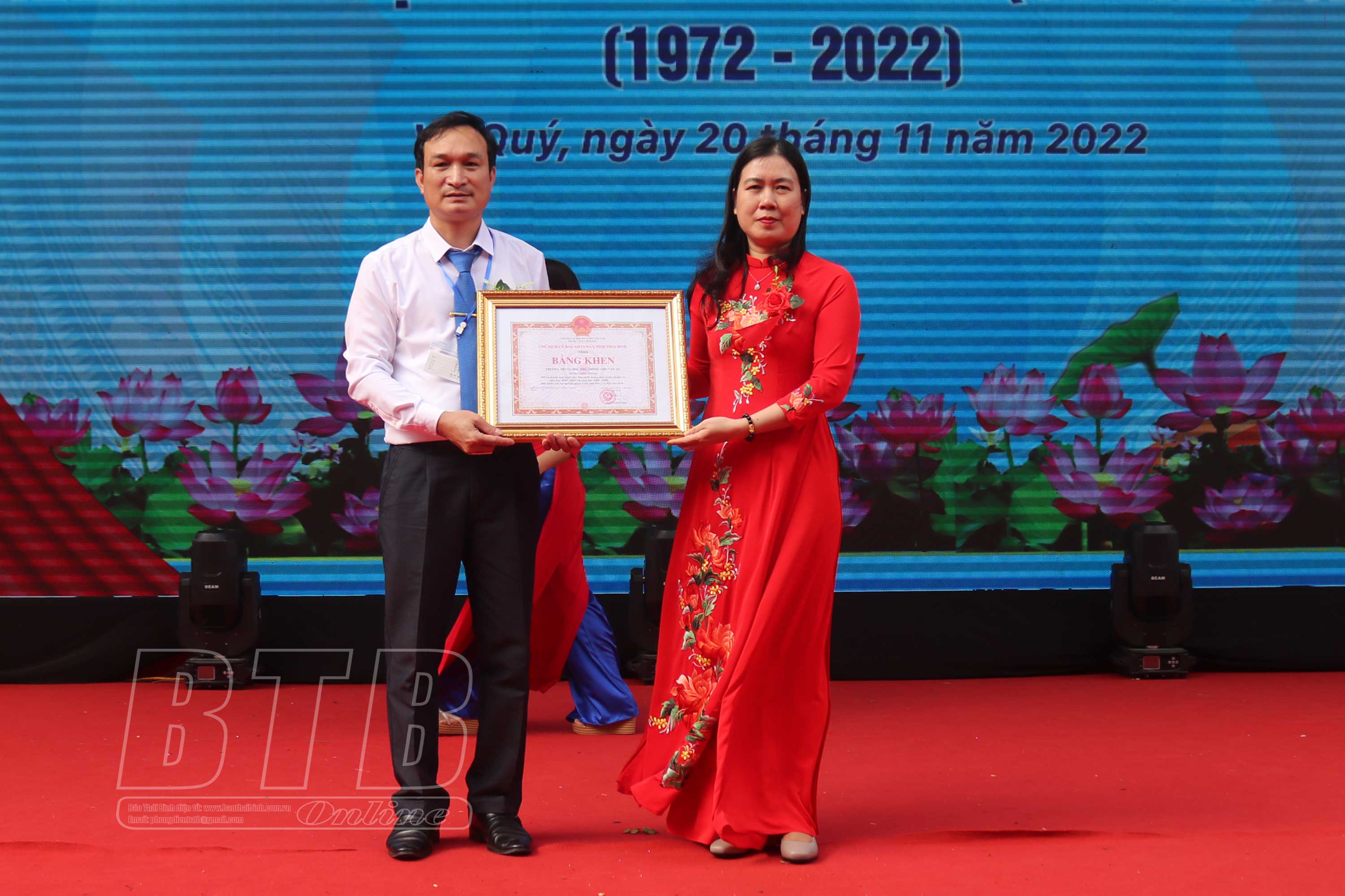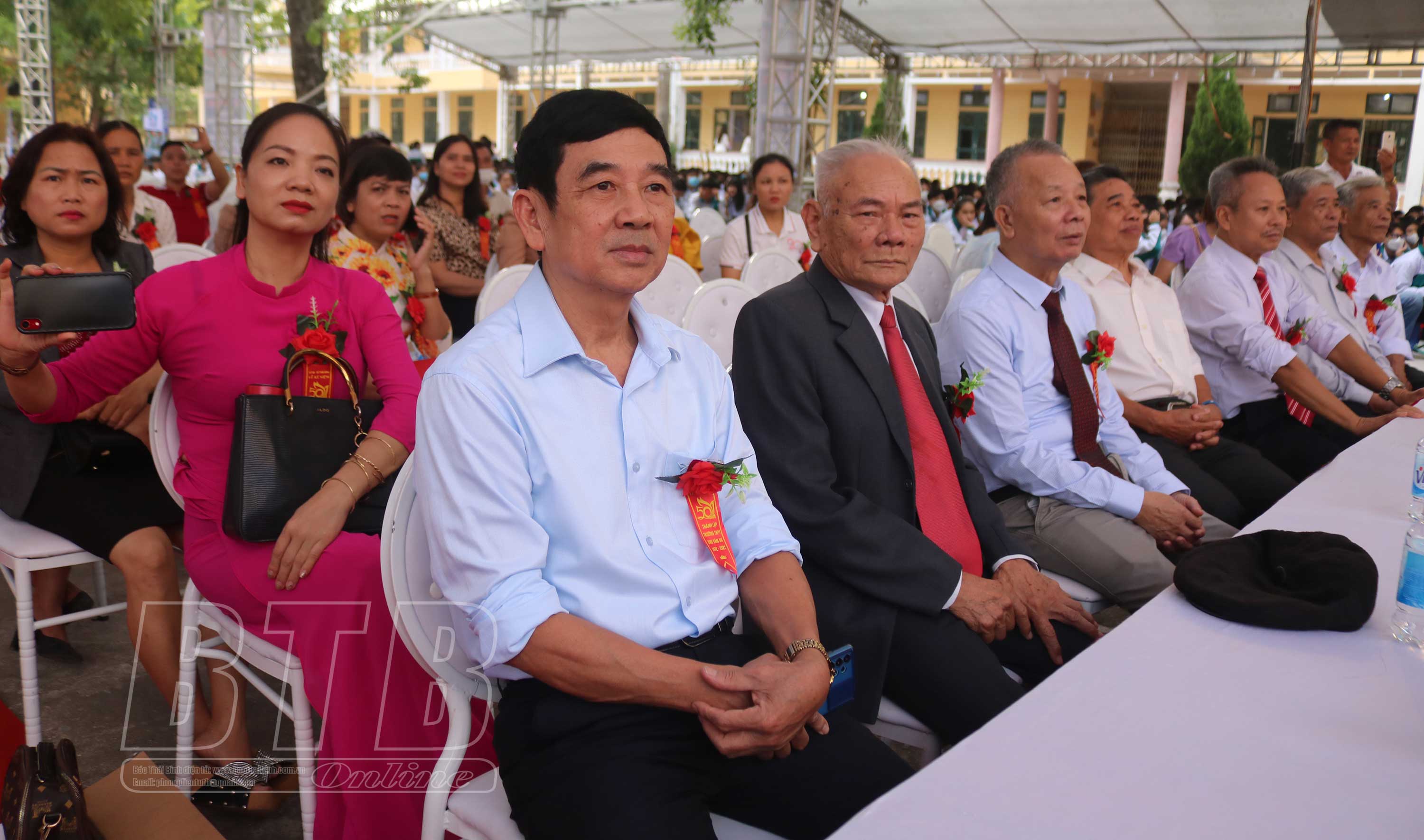 Dự lễ kỷ niệm có các đồng chí: Lương Quốc Đoàn, Ủy viên Ban Chấp hành Trung ương Đảng, Chủ tịch Trung ương Hội Nông dân Việt Nam; Vũ Thanh Vân, Ủy viên Ban Thường vụ Tỉnh ủy, Chủ tịch Ủy ban MTTQ tỉnh; Trần Thị Bích Hằng, Tỉnh ủy viên, Phó Chủ tịch UBND tỉnh; lãnh đạo Sở Giáo dục và Đào tạo, huyện Kiến Xương cùng đông đảo các thế hệ giáo viên, học sinh qua các thời kỳ.