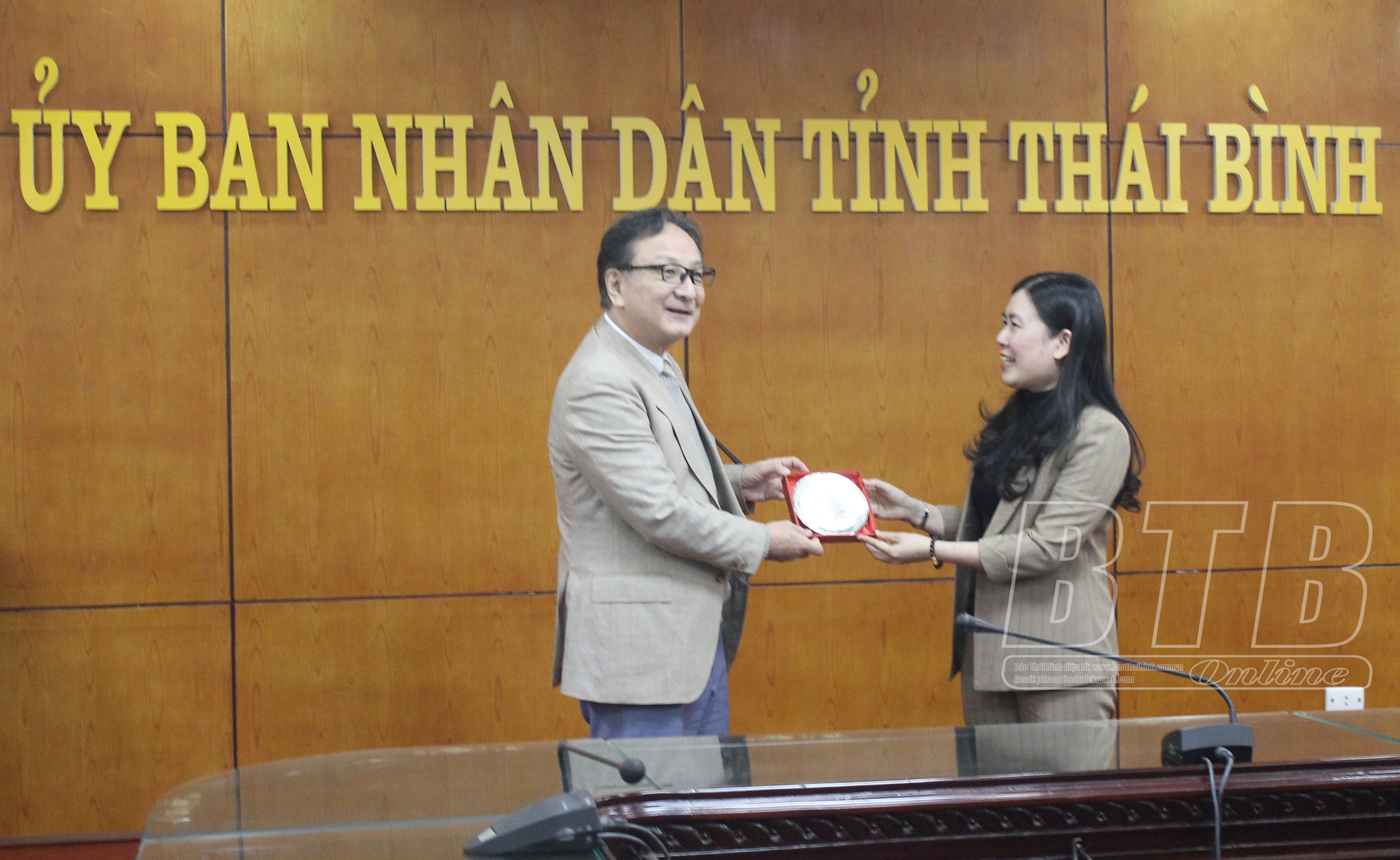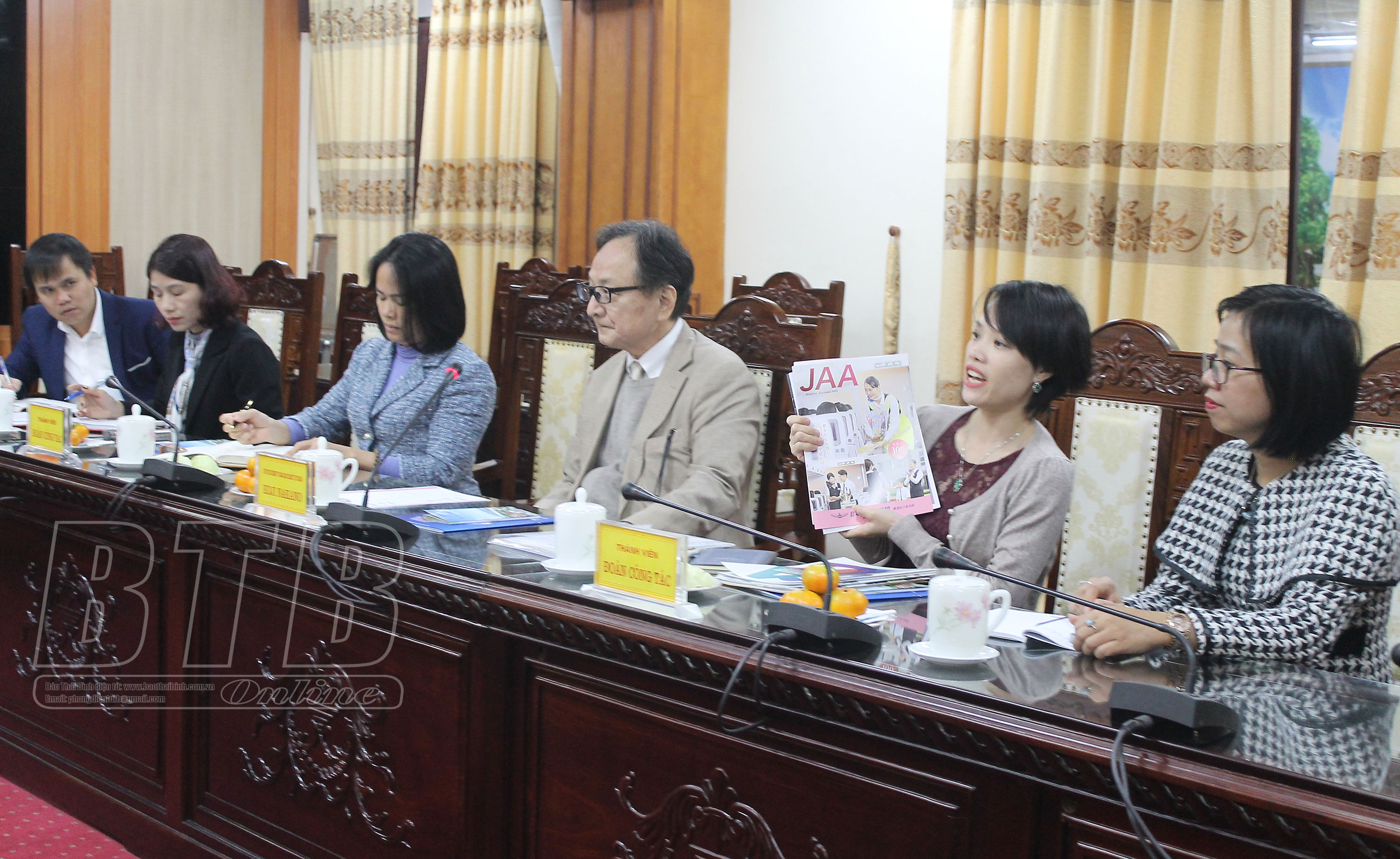 Đại diện Công ty Giáo dục quốc tế VITJAN báo cáo nội dung kế hoạch đầu tư hệ thống trường liên cấp quốc tế tại Thái Bình, trong đó Công ty TNHH Học viện quản lý giáo dục ATI (là công ty đối tác của Công ty Giáo dục quốc tế VITJAN) đề xuất được UBND tỉnh cho phép liên kết đào tạo với Trường Cao đẳng Sư phạm Thái Bình và đầu tư lĩnh vực giáo dục, đào tạo tại Thái Bình.