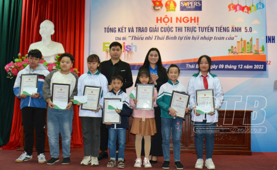 Các em học sinh nhận giải nhì cuộc thi trực tuyến tiếng Anh 5.0.