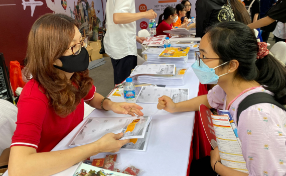 Thí sinh nghe tư vấn tuyển sinh đại học năm 2022.