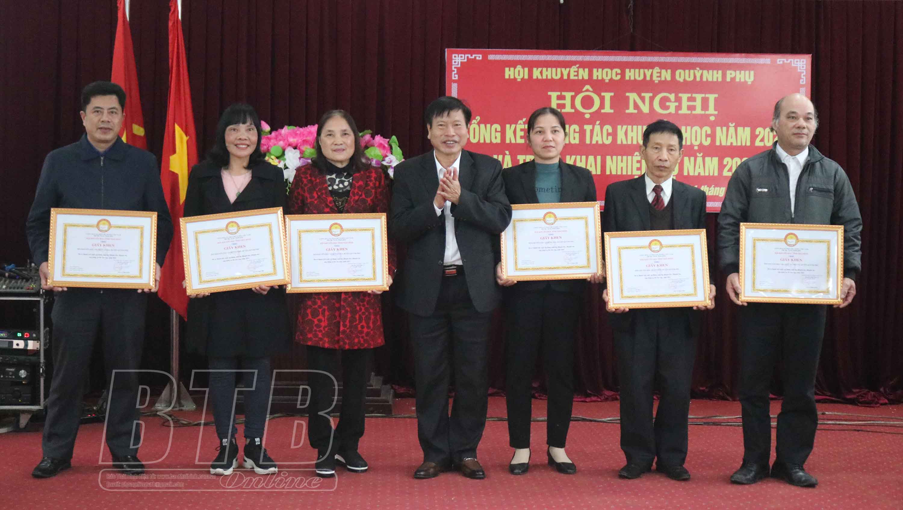 Lãnh đạo huyện Quỳnh Phụ khen thưởng cho các tập thể, cá nhân.