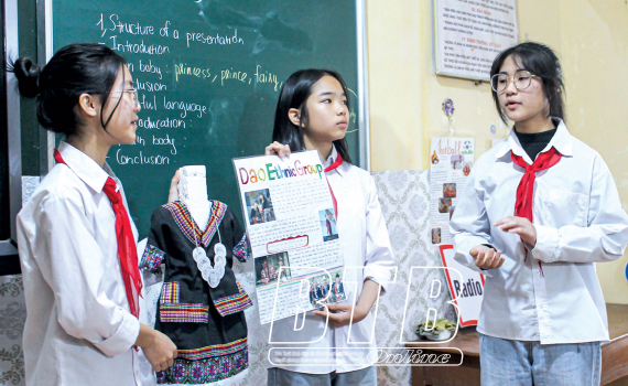 Học sinh Trường THCS Vũ Hội tìm hiểu, thuyết trình bằng tiếng Anh chủ đề văn hóa người Dao.