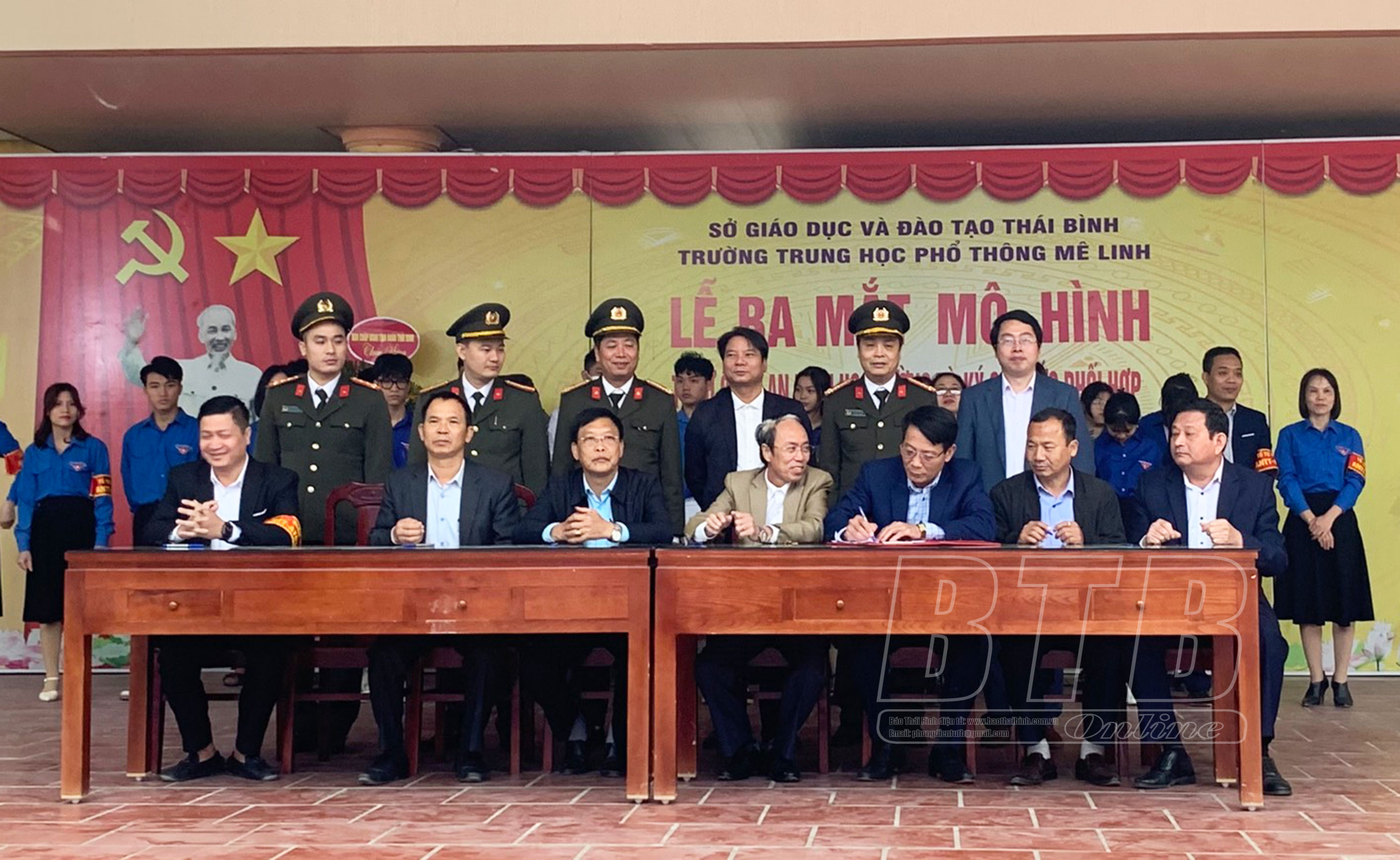 Lễ ký quy ước phối hợp bảo đảm an ninh trật tự giữa Trường THPT Mê Linh và UBND 6 xã cụm 3 (huyện Đông Hưng).