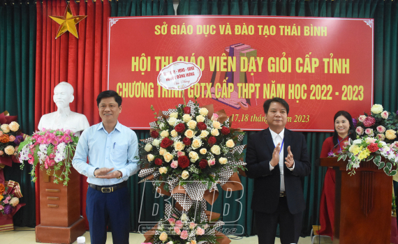 Lãnh đạo huyện Đông Hưng tặng hoa chúc mừng.
