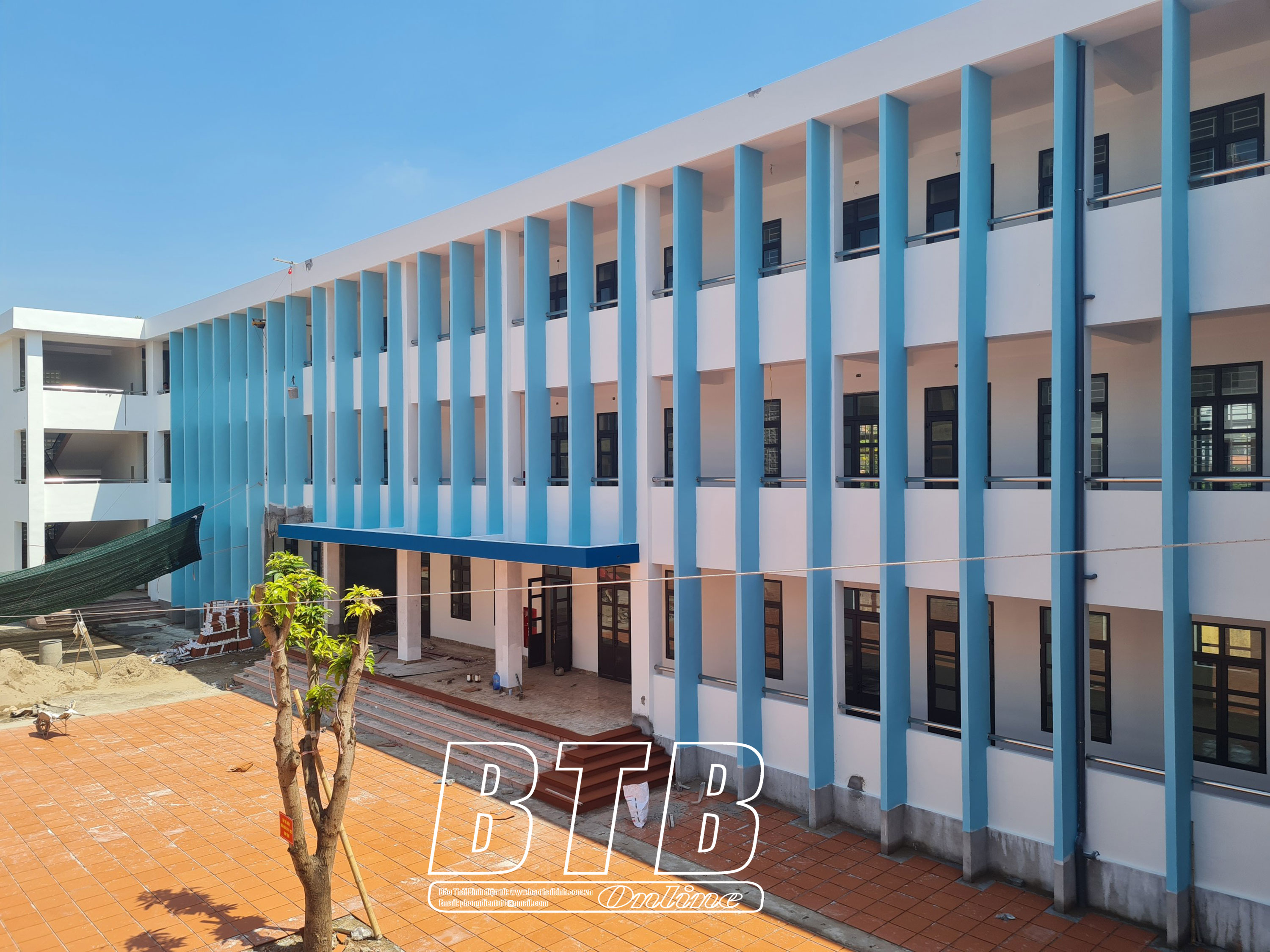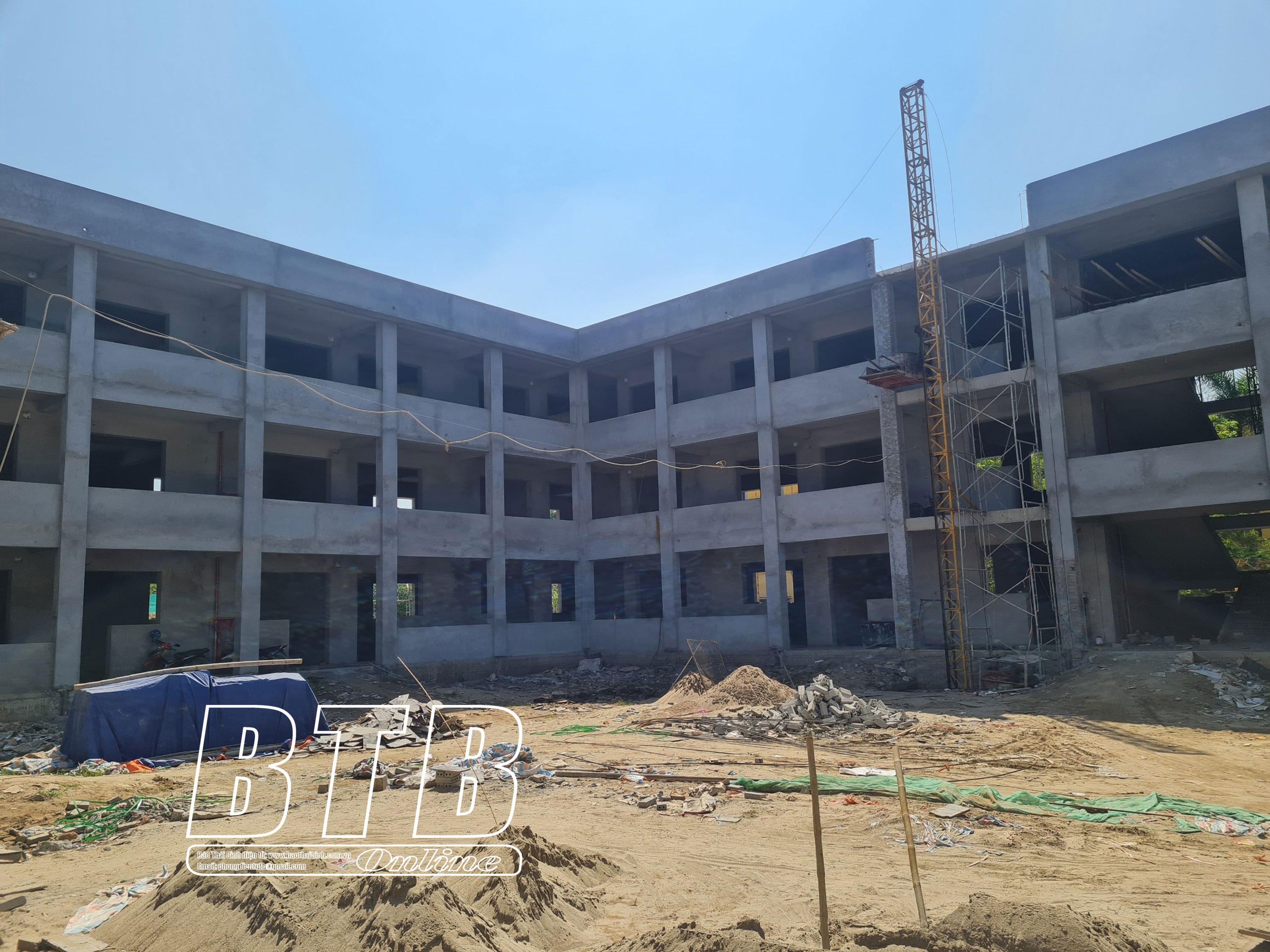 Ông Bùi Duy Tuân, chỉ huy trưởng công trình, Công ty Cổ phần Xây dựng và thương mại Đại Hùng cho biết: Công trình được khởi công từ tháng 11/2022, đến nay đã hoàn thành 80% khối lượng công việc, hiện nhà thầu đang tập trung nhân lực, vật lực triển khai các công trình phụ trợ, sân dậu, bảo đảm hoàn thành trong tháng 8 để kịp đón năm học mới.