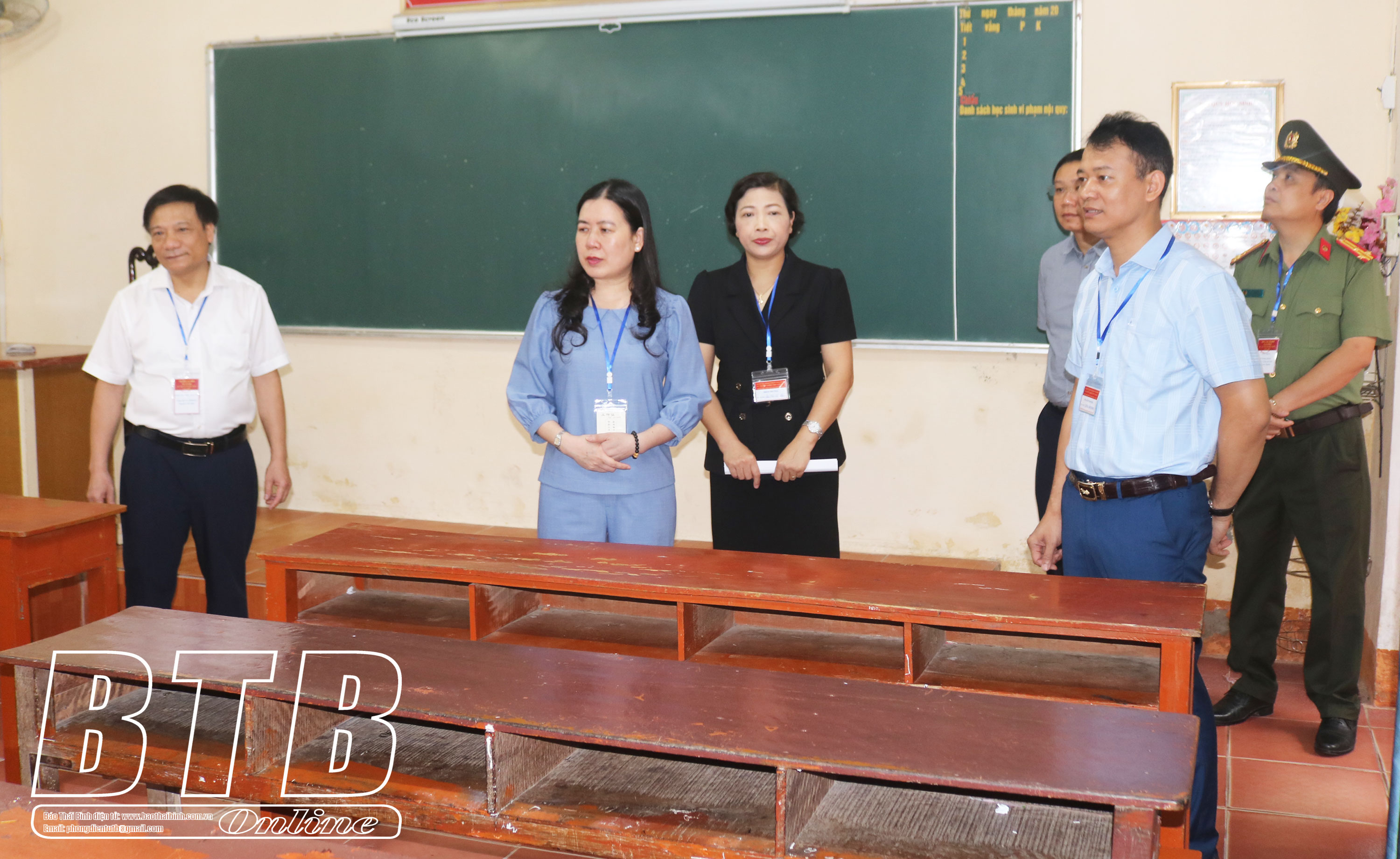 Qua kiểm tra thực tế tại các điểm thi, đồng chí Phó Chủ tịch UBND tỉnh, Trưởng ban Chỉ đạo kỳ thi tốt nghiệp THPT năm 2023 tỉnh đánh giá cao công tác chuẩn bị hệ điều kiện của các điểm thi. Đồng chí đề nghị các điểm thi tiếp tục chú trọng các khâu của kỳ thi, bố trí phòng thi, phòng dự phòng, phòng chờ, phòng làm việc của hội đồng thi, phòng bảo quản đề thi, bài thi theo đúng quy định. Quan tâm, bố trí hợp lý nơi ăn, nghỉ dành cho cán bộ, giám thị coi thi. Trong quá trình thực hiện nhiệm vụ cần nêu cao trách nhiệm, không được chủ quan, sơ suất, tránh để xảy ra sự việc đáng tiếc. Đồng chí cũng lưu ý cán bộ làm nhiệm vụ thực hiện đúng quy chế nhưng không tạo áp lực để thí sinh thoải mái, yên tâm làm bài đạt kết quả cao nhất.