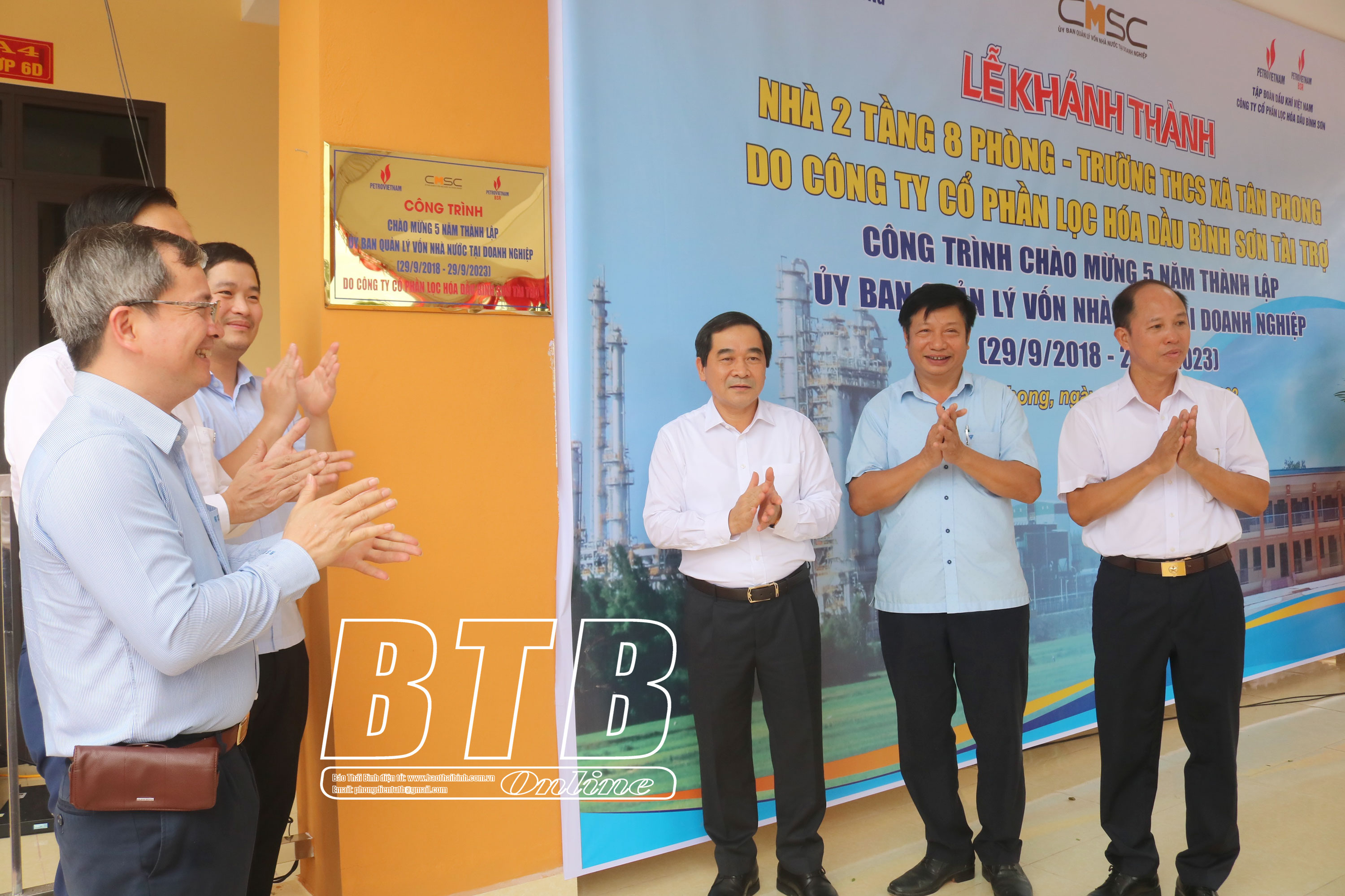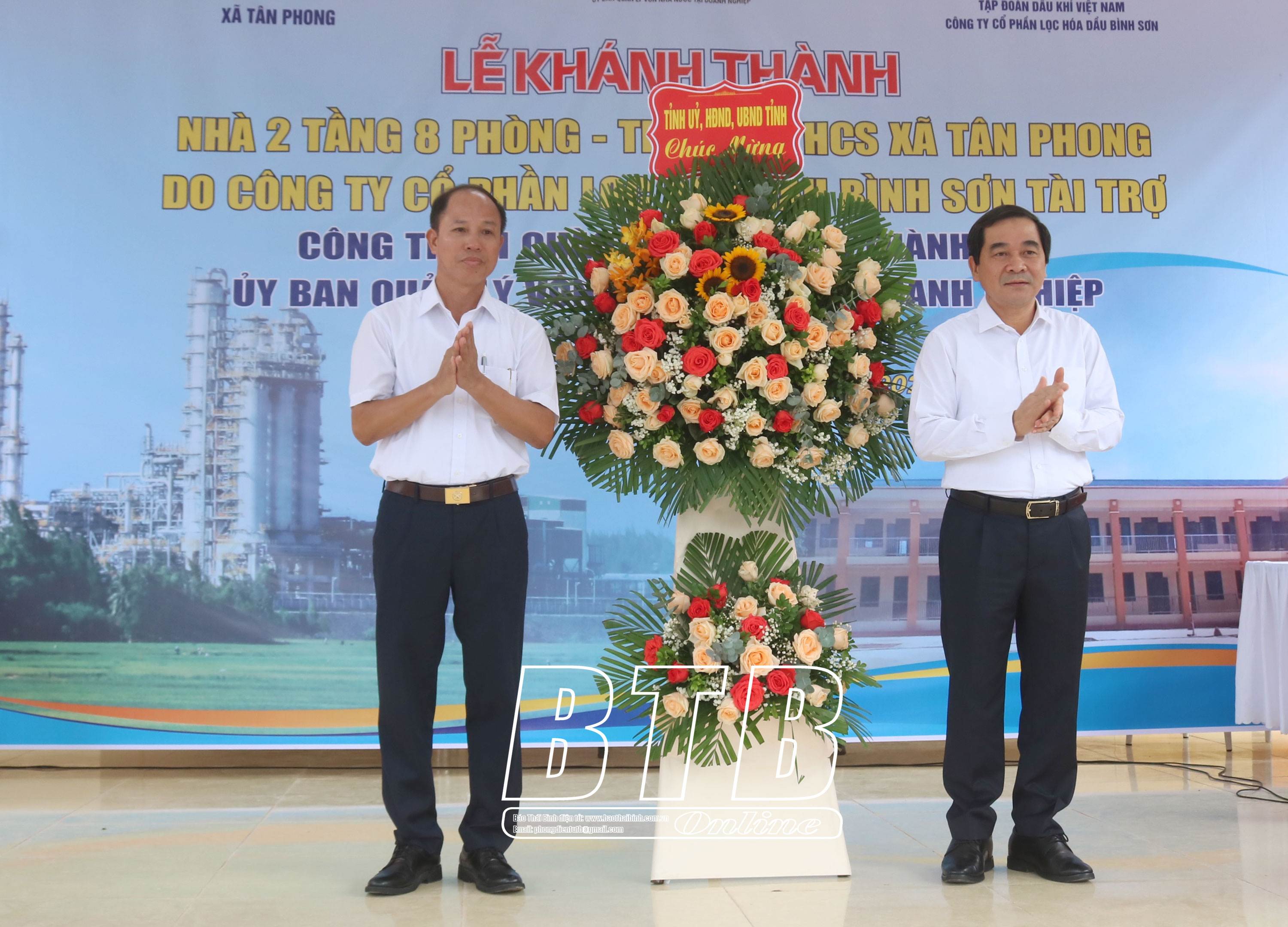 Trường THCS Tân Phong được xây dựng cách đây hơn 40 năm, cơ sở vật chất đã xuống cấp nghiêm trọng, nhiều hạng mục công trình bị hư hỏng nặng, không bảo đảm cho công tác dạy và học. Trước thực trạng trên, năm 2022, Công ty Cổ phần Lọc hóa dầu Bình Sơn (Tập đoàn Dầu khí Việt Nam) đã hỗ trợ 5 tỷ đồng; ngân sách nhà nước cấp 1 tỷ đồng để xây dựng dãy nhà 2 tầng gồm 8 phòng học. Công trình được hoàn thành trước năm học mới 2023-2024 là điều kiện thuận lợi cho công tác dạy và học, động viên, khích lệ tập thể cán bộ, giáo viên và học sinh toàn trường tiếp tục vươn lên dạy tốt, học tốt.