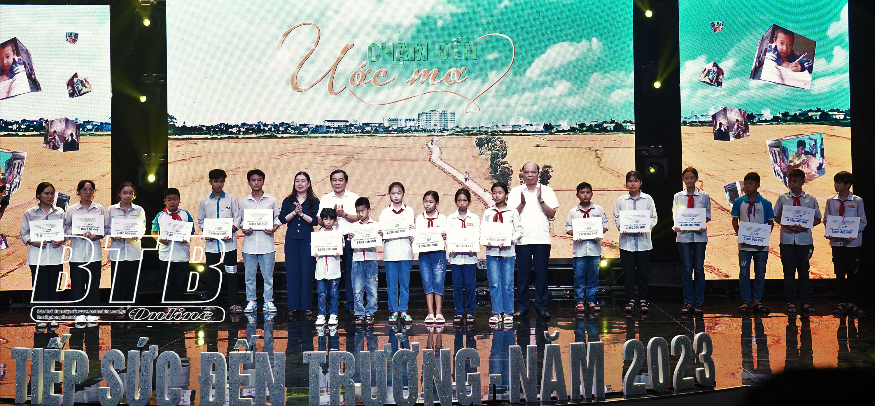 Với chủ đề “Chạm đến giấc mơ”, gala tiếp sức đến trường lần thứ VI là cuộc hội ngộ của những em học sinh đã được giúp đỡ từ quỹ tiếp sức đến trường 6 năm qua. Từ tháng 9/2022 đến nay, đã có 45 em học sinh tham gia chương trình. Không chỉ được nhận ngay 5 triệu đồng khi ghi hình, các em còn được nhận quà vào đêm gala tiếp sức đến trường hàng năm, nhân dịp đầu năm học mới và dịp tết Nguyên đán. Sau 6 năm, gần 300 học sinh nghèo đã được giúp đỡ, quỹ tiếp sức đến trường đã trích hơn 6,2 tỷ đồng trao quà cho các em. Thông qua nguồn quỹ này, đã có 26 ngôi nhà cho các em học sinh có hoàn cảnh khó khăn được xây mới, tổng mức hỗ trợ gần 2,6 tỷ đồng. 5 công trình vệ sinh và 1 bếp ăn tổng trị giá trên 1,7 tỷ đồng được trao cho các trường học.