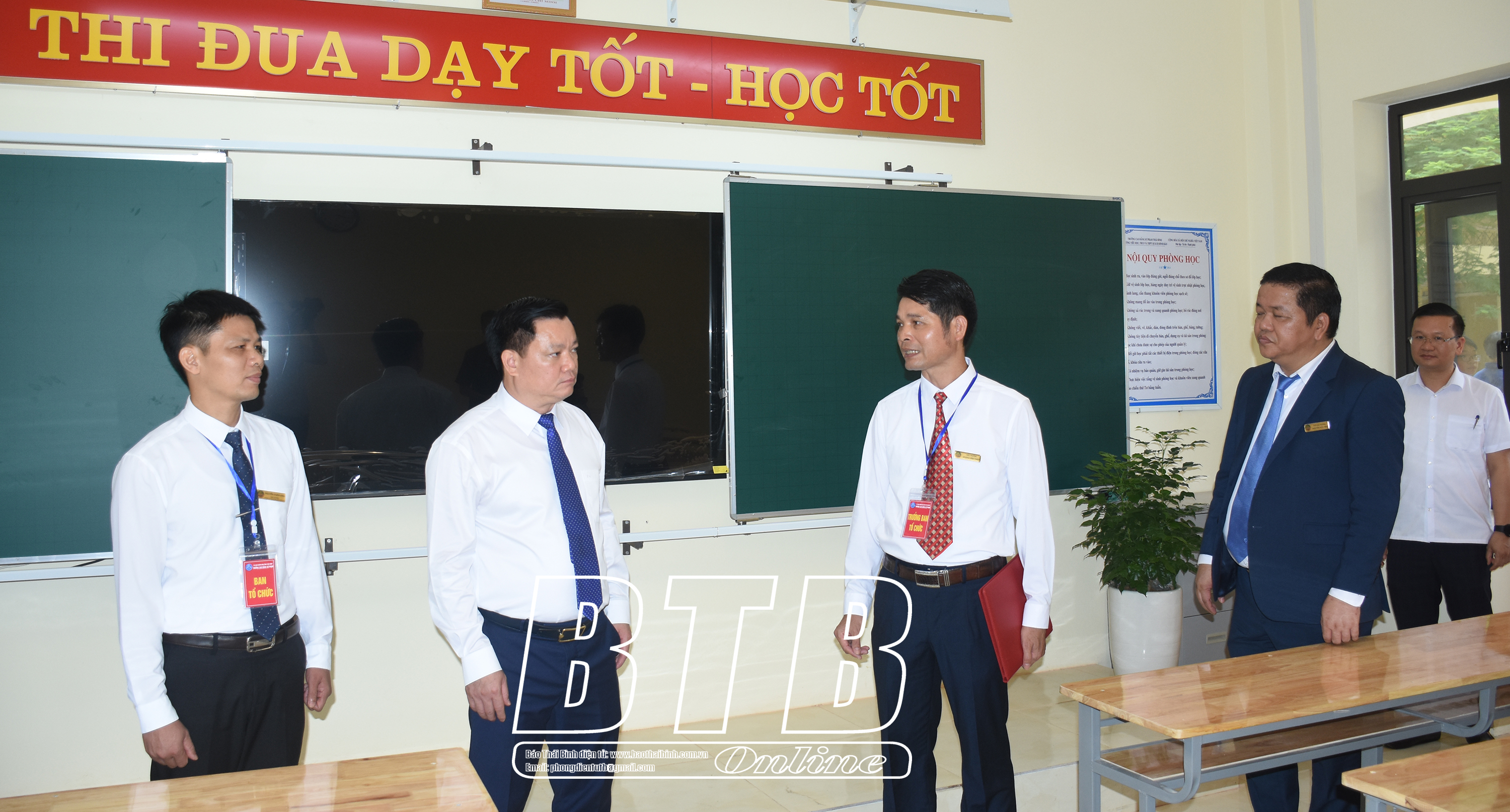 Đồng chí Phó Bí thư Tỉnh ủy, Chủ tịch UBND tỉnh thăm cơ sở vật chất của Trường Tiểu học, THCS, THPT Quách Đình Bảo thuộc Trường Cao đẳng Sư phạm Thái Bình.