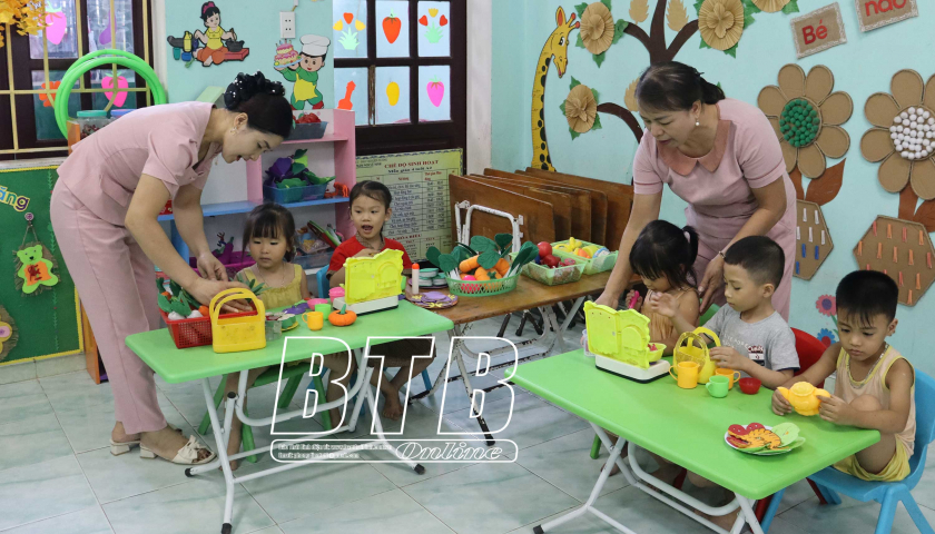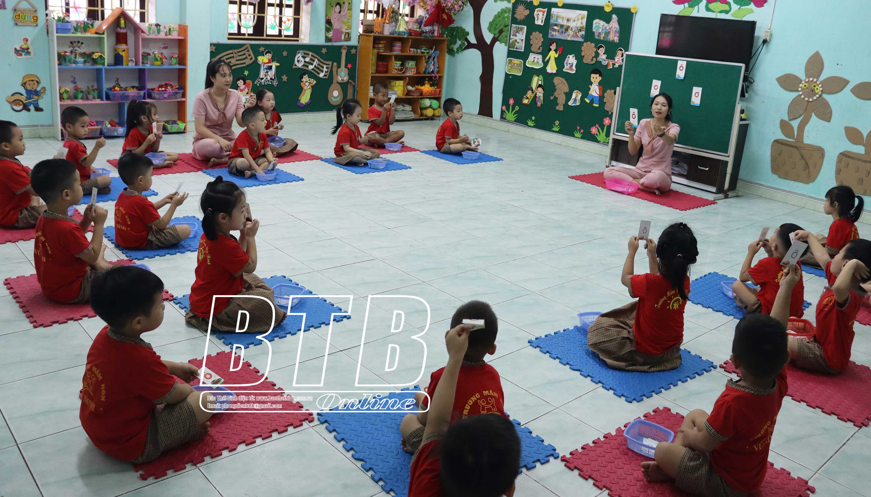 Ông Lại Công Hoan cho biết thêm: Cùng với làm tốt công tác giáo dục, nhà trường còn đầu tư mua sắm đầy đủ đồ dùng trang thiết bị phục vụ tốt cho việc nuôi dưỡng chăm sóc trẻ. Đến nay, toàn bộ các phòng học đều có hệ thống điều hòa 2 chiều, bình nóng lạnh, hệ thống rèm cửa, công trình nhà vòm đa năng. Ngoài việc xây dựng thực đơn, tính khẩu phần cho trẻ ăn theo quy định, nhà trường đã đầu tư trang thiết bị phục vụ đầy đủ cho việc nấu ăn như tủ hấp cơm, nồi cháo công nghiệp, tủ sấy bát, máy thái rau, củ, quả, máy lọc nước, máy rửa bát bảo đảm vệ sinh an toàn thực phẩm. Kết quả hàng năm 100% học sinh lớp 5 tuổi của nhà trường đủ điều kiện vào lớp 1; 98% trở lên số học sinh ở kênh phát triển bình thường. Nhà trường đã vinh dự được nhận bằng khen của Thủ tướng Chính phủ, Bộ Giáo dục và Đào tạo và của UBND tỉnh.