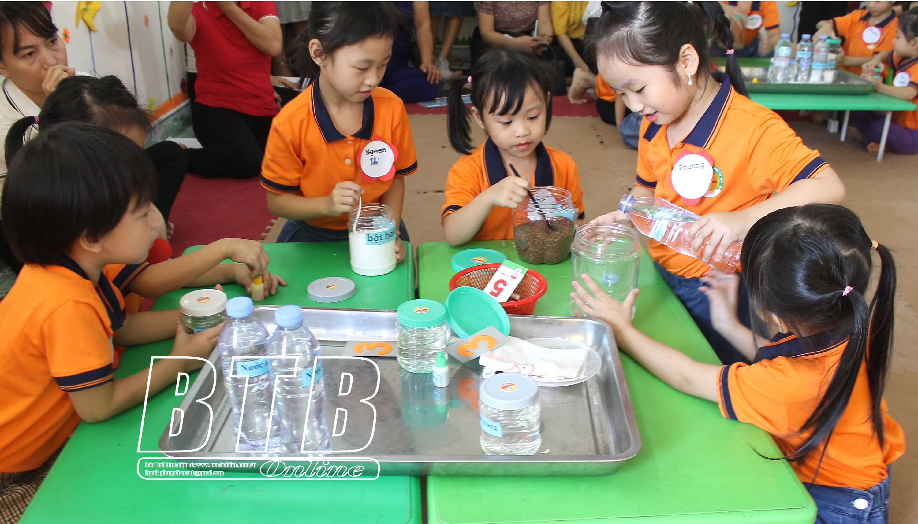 Ứng dụng phương pháp STEM, giáo viên cho trẻ tự thực hiện thí nghiệm “hạt gạo nhảy múa”.