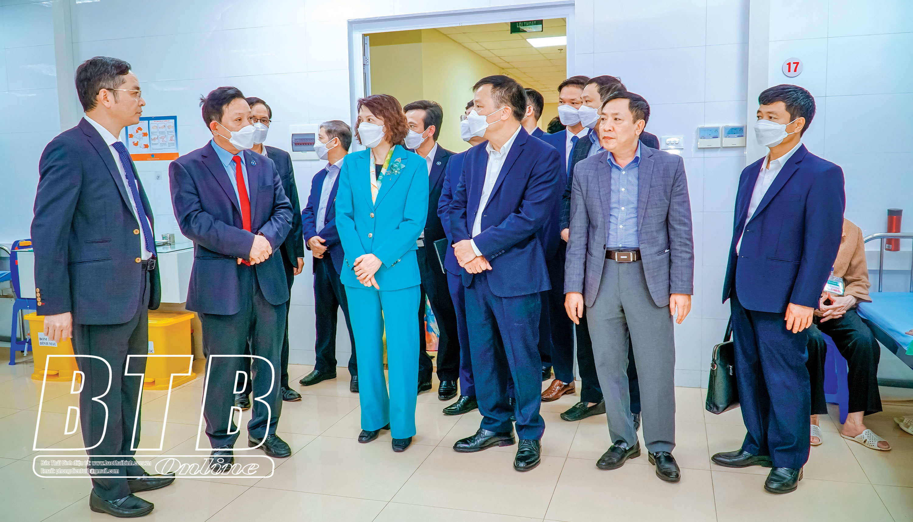 Thứ trưởng Bộ Y tế Nguyễn Thị Liên Hương tham quan Trung tâm Mô phỏng và Huấn luyện kỹ năng của Trường Đại học Y Dược Thái Bình.