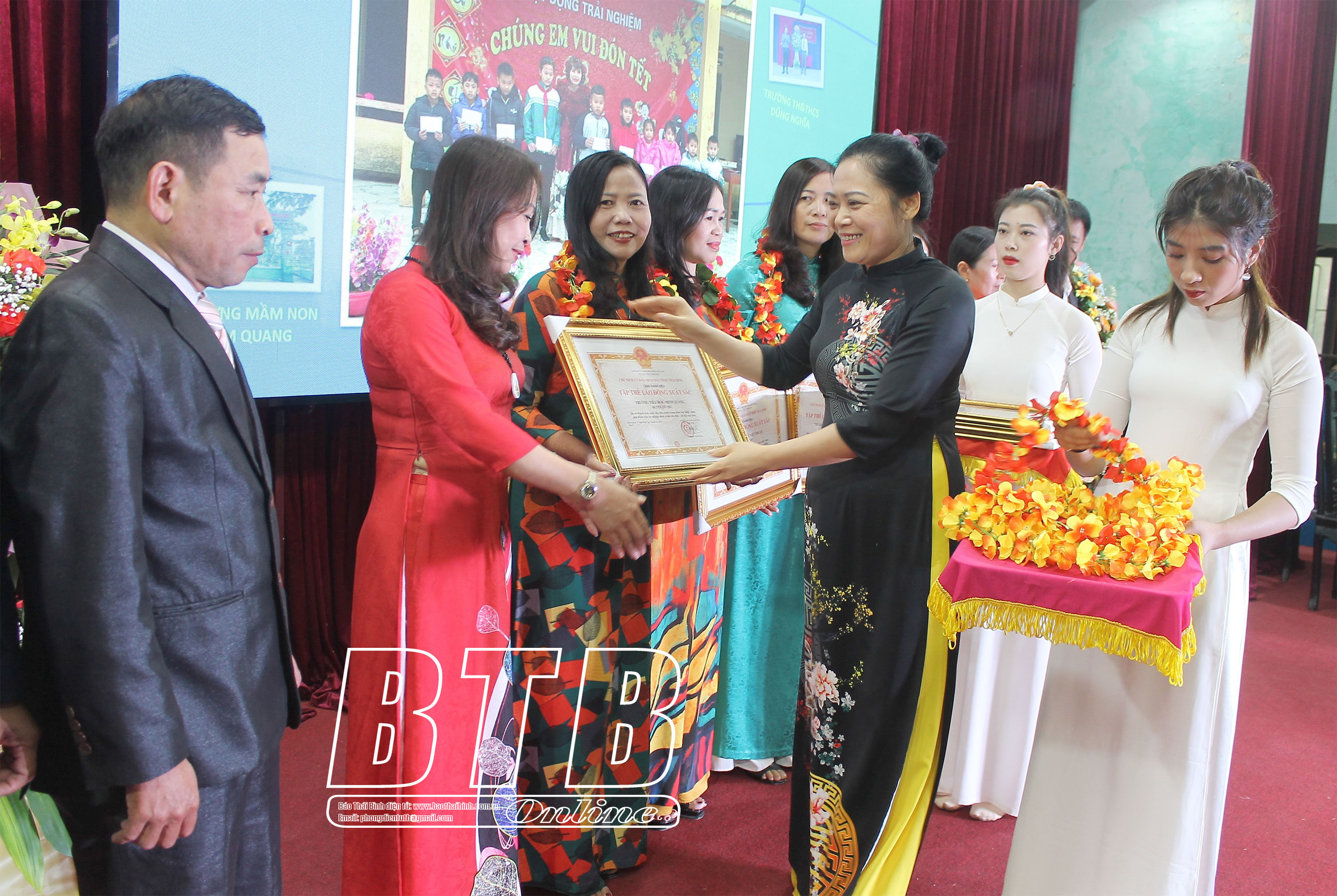 Lãnh đạo huyện Vũ thư trao bằng khen của UBND tỉnh cho các tập thể có thành tích xuất sắc trong năm học 2022 - 2023