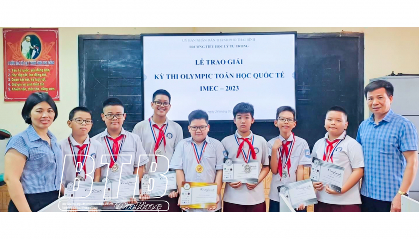 Lãnh đạo nhà trường trao giải cho học sinh đạt giải kỳ thi olympic Toán học quốc tế IMEC năm 2023.