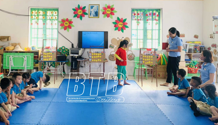Giáo viên Trường Mầm non Thụy Hồng (Thái Thụy) áp dụng phương pháp lấy học sinh làm trung tâm trong giảng dạy.