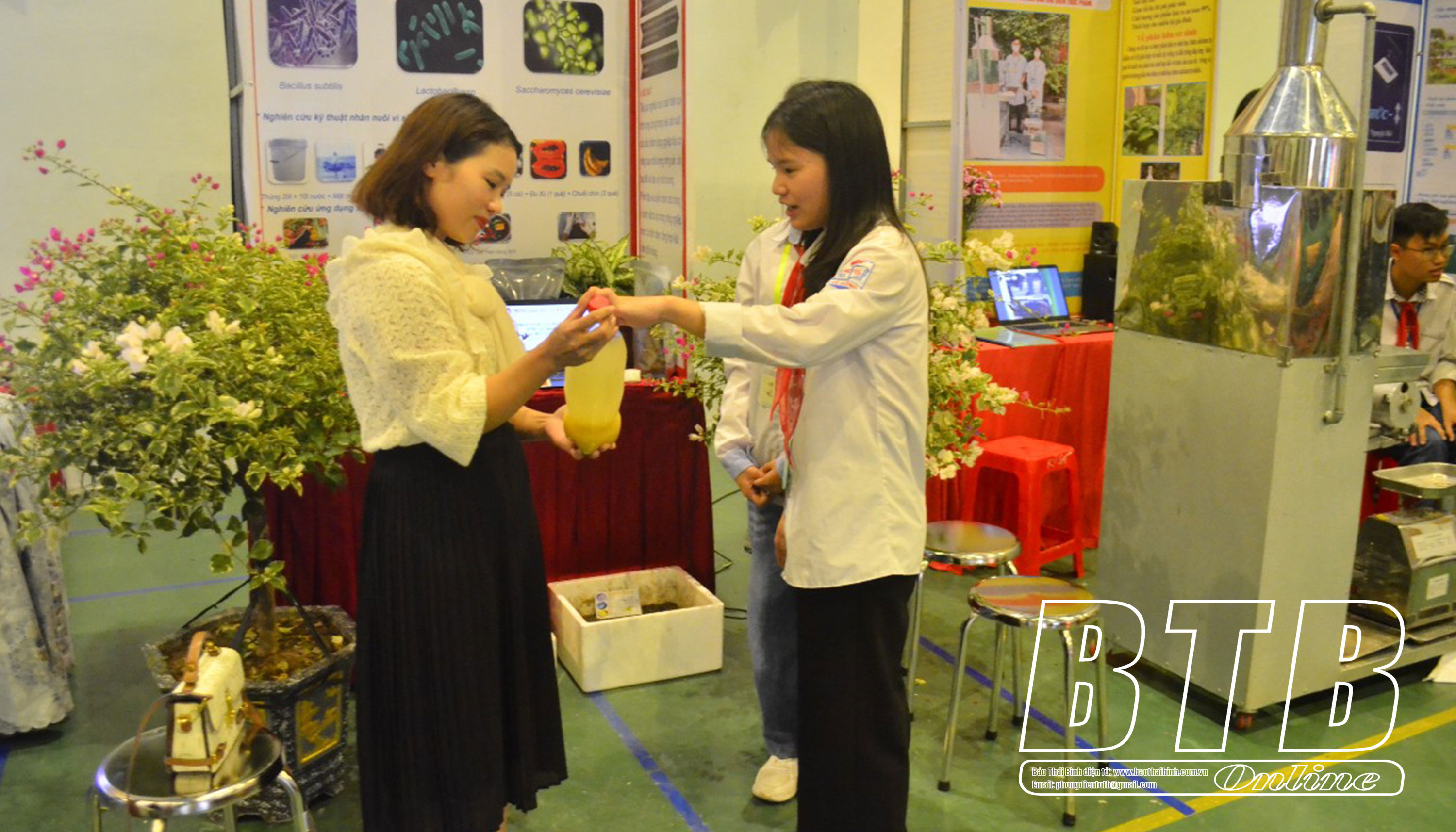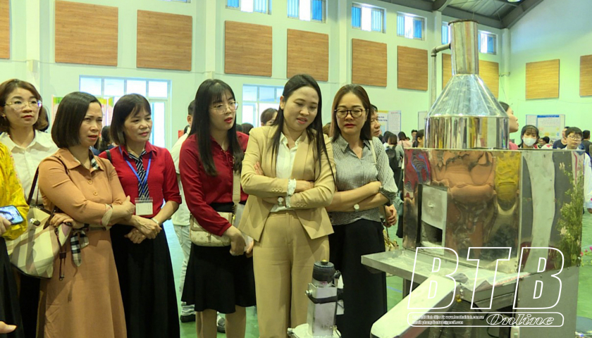 Các đồng chí lãnh đạo tham quan dự án của học sinh.