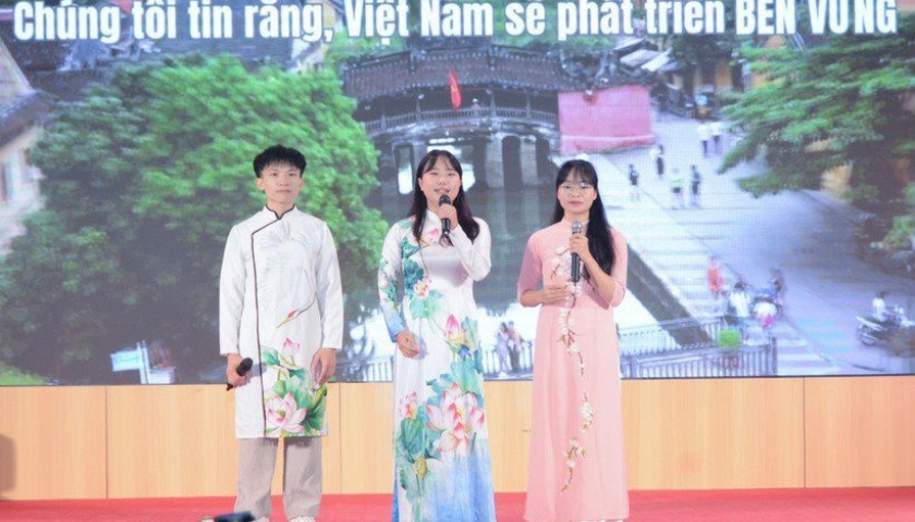 Lưu học sinh nước ngoài tham gia cuộc thi hùng biện do Bộ Giáo dục và Đào tạo tổ chức vào tháng 10-2023 tại Hà Nội.