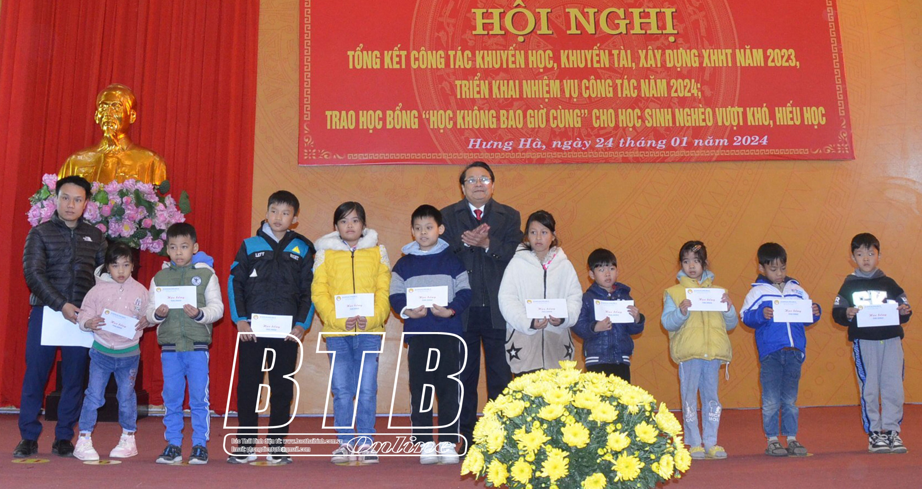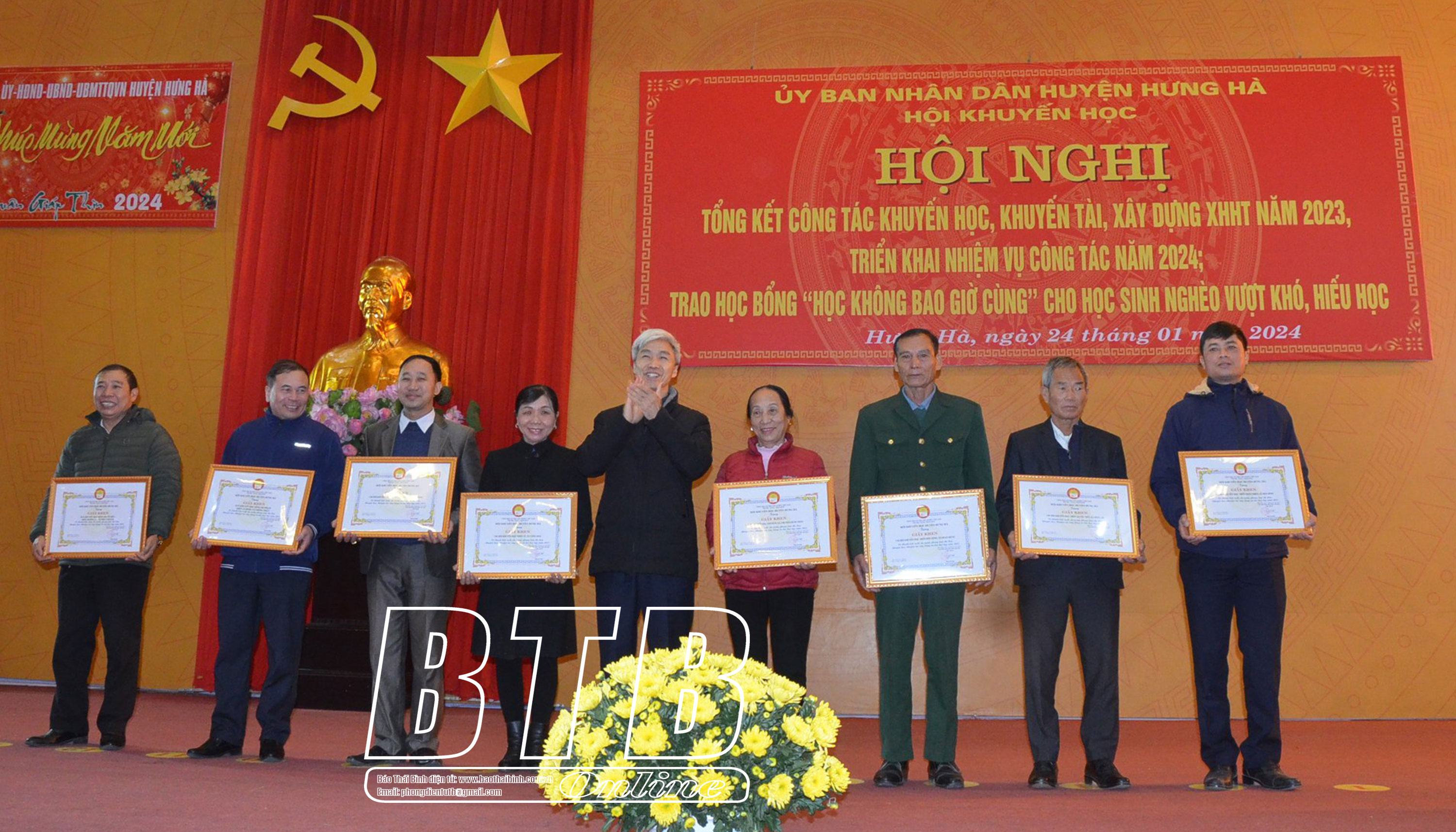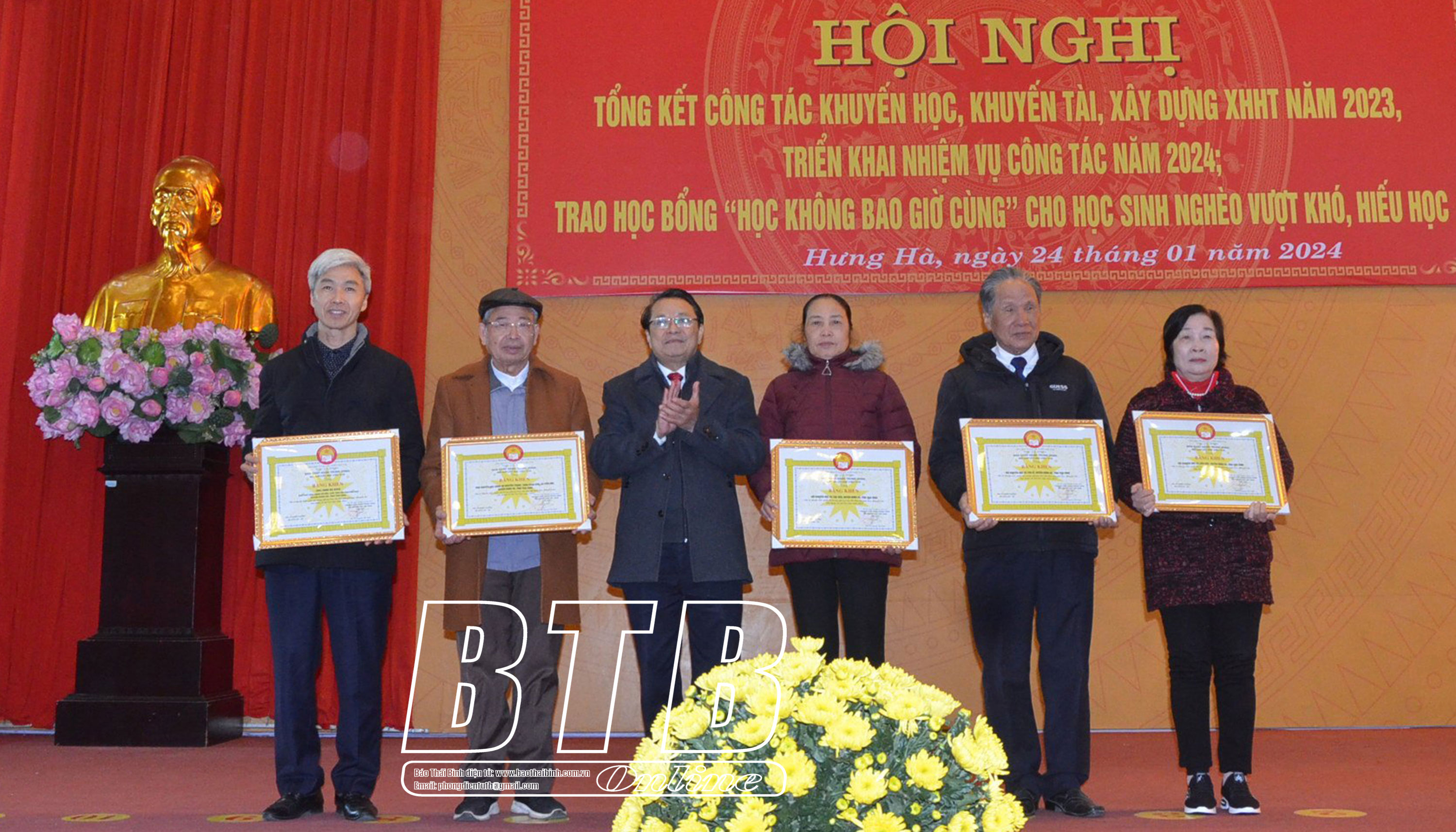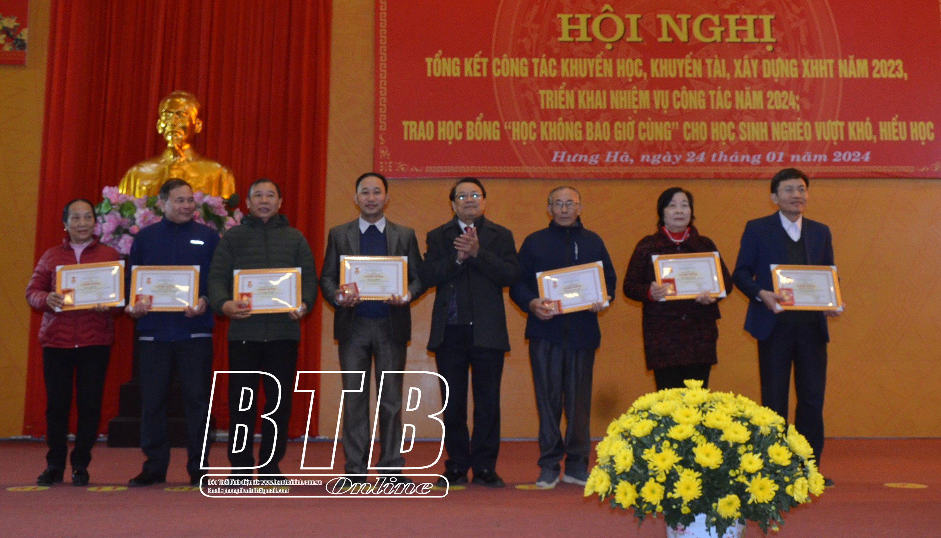 Nhân dịp này, Trung ương Hội Khuyến học Việt Nam đã tặng cờ thi đua, kỷ niệm chương, bằng khen cho các tập thể, cá nhân tiêu biểu; Hội Khuyến học tỉnh, huyện tặng giấy khen cho nhiều tập thể, cá nhân có thành tích xuất sắc trong công tác KHKT, xây dựng XHHT năm 2023. Đồng thời, trao 20 suất học bổng "Học không bao giờ cùng" cho học sinh nghèo hiếu học trên địa bàn.