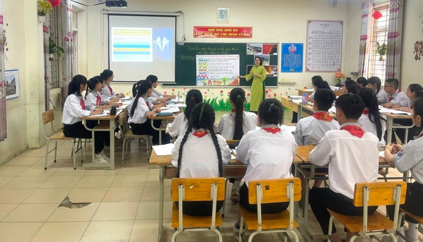 Giờ học của học sinh Trường Trung học cơ sở Đại Thịnh (huyện Mê Linh, Hà Nội).
