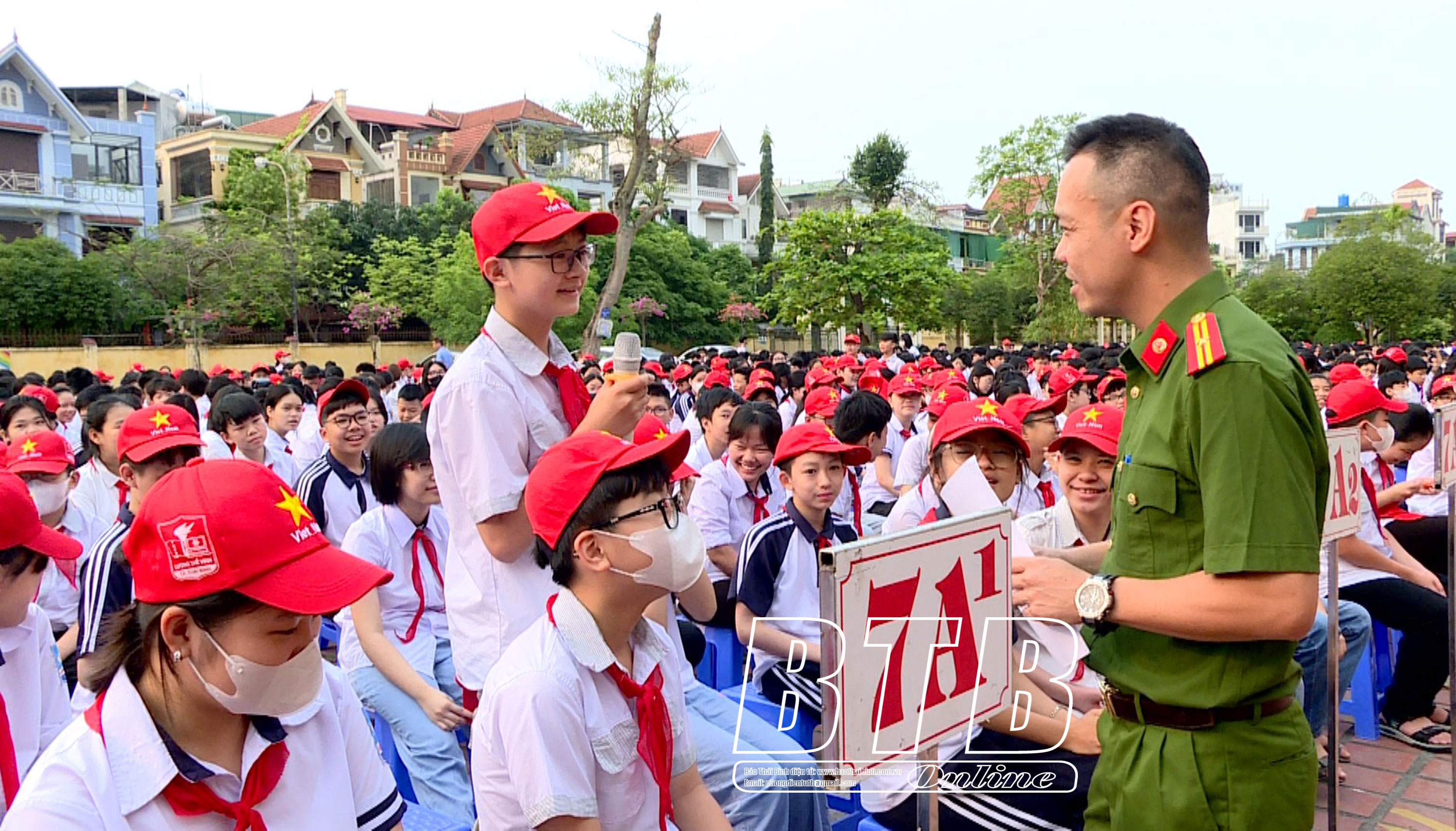 Với hình thức sân khấu hóa sôi nổi, hấp dẫn, các tuyên truyền viên Công an phường Trần Hưng Đạo đã thông tin đến toàn thể cán bộ, giáo viên và học sinh nhà trường một số nội dung liên quan đến công tác bảo đảm trật tự an toàn giao thông, tình hình tai nạn giao thông trên địa bàn tỉnh thời gian qua; hệ lụy của tai nạn giao thông; tình trạng vi phạm Luật Giao thông đường bộ của một bộ phận thanh, thiếu niên hiện nay, nhất là việc không đội mũ bảo hiểm khi ngồi trên mô tô, xe gắn máy, xe đạp điện; tình trạng phóng nhanh, vượt ẩu, lạng lách, đánh võng, đua xe trái phép… Bên cạnh đó các em cũng hiểu rõ hơn về khái niệm thuốc lá điện tử, tác hại của các chất gây nghiện trong đó có ma túy và thuốc lá điện tử, cách nhận diện, sự ảnh hưởng của các chất gây nghiện đối với sức khỏe con người, đặc biệt là các khung hình phạt theo quy định của pháp luật đối với người mua bán và tàng trữ ma túy.