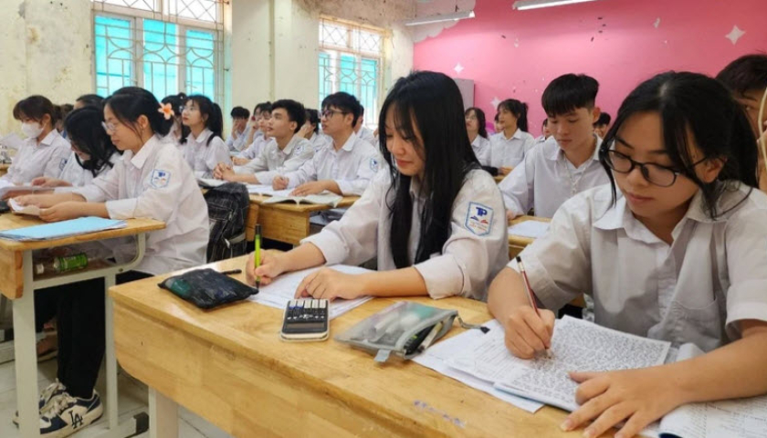 Học sinh lớp 12, Trường THPT Tiền Phong (Mê Linh, Hà Nội) trong giờ ôn thi tốt nghiệp.