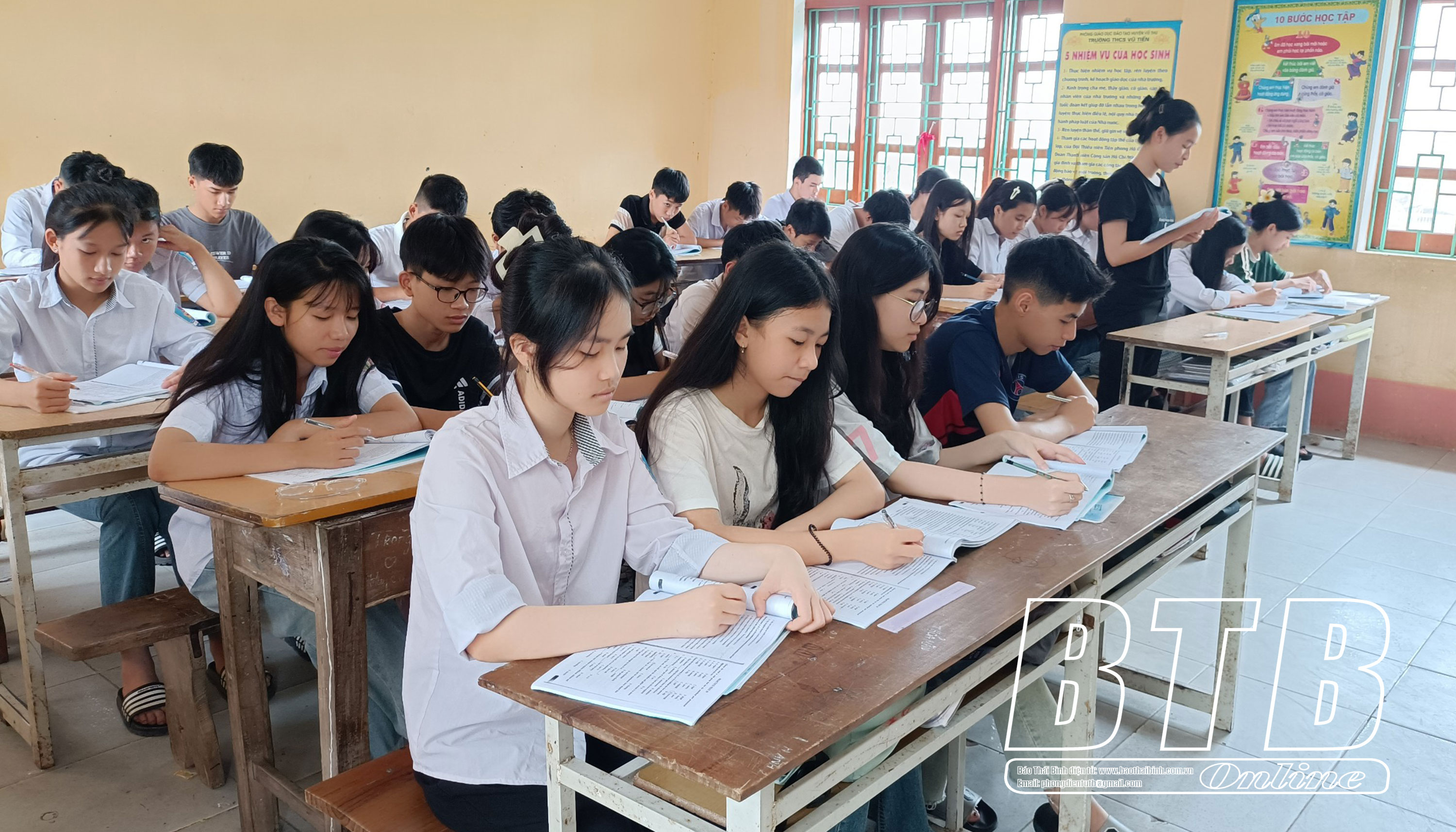 Học sinh khối 9, Trường THCS Vũ Tiến (Vũ Thư) tập trung cao độ cho giai đoạn ôn tập nước rút.
