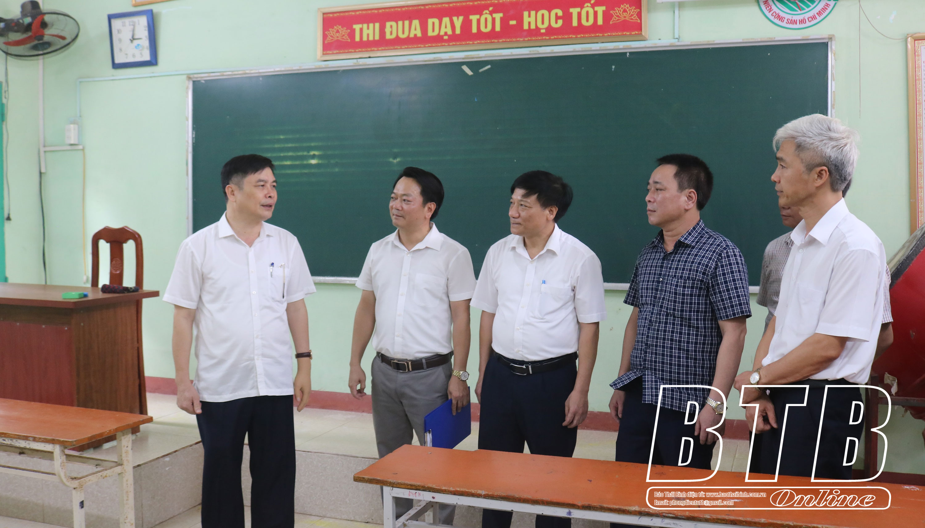 Đồng chí Phạm Văn Nghiêm, Tỉnh ủy viên, Phó Chủ tịch UBND tỉnh, Trưởng ban Chỉ đạo kỳ thi tốt nghiệp THPT năm 2024 tỉnh kiểm tra công tác chuẩn bị tổ chức kỳ thi tại điểm thi Trường THPT Đông Hưng Hà.