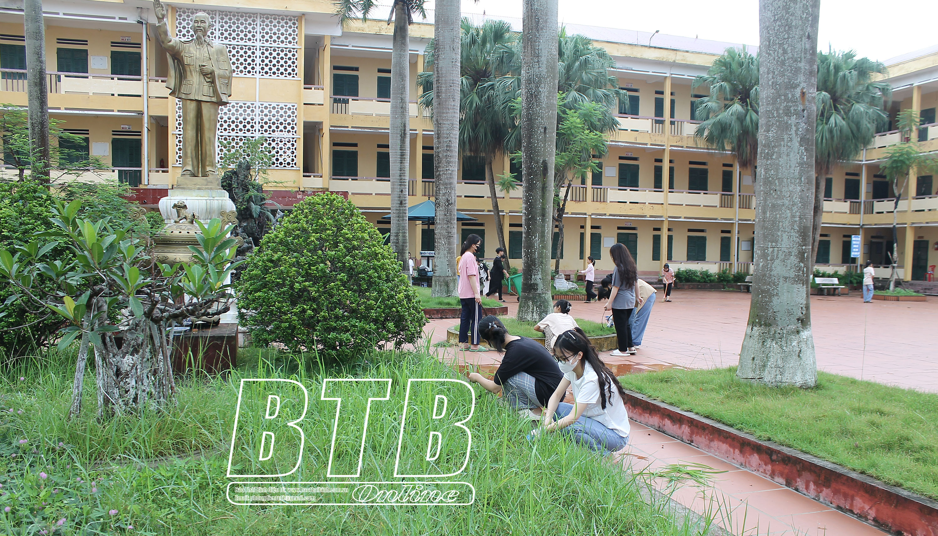 Trường THPT Lý Bôn huy động học sinh lớp 11 tổng vệ sinh khuôn viên, phục vụ kỳ thi tốt nghiệp THPT năm 2024.